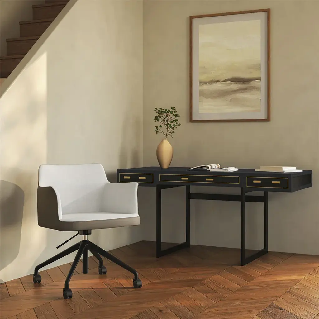 The Studio Office Chair in Beige is a sleek and ergonomic seating solution. Featuring a modern design with cushioned seat, armrests and four caster wheel base, this chair offers both comfort and mobility. Its adjustable height and contemporary style make it an ideal addition to any home or professional office workspace.