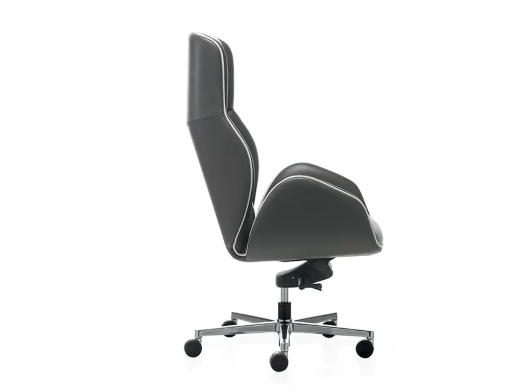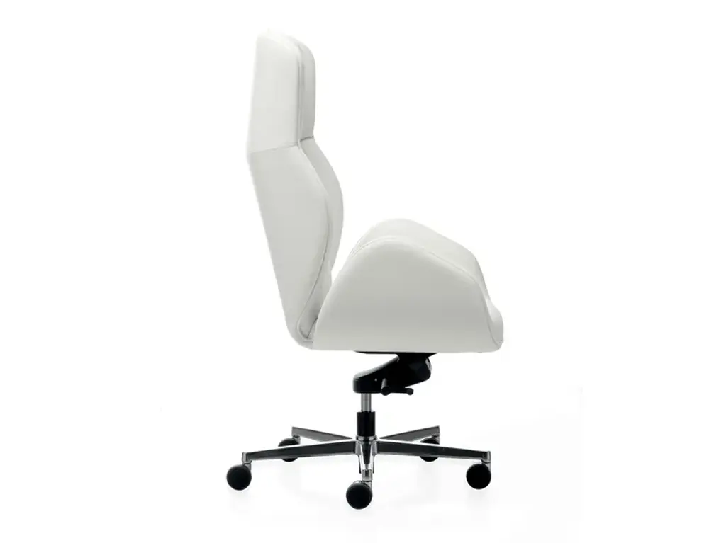 Suoni Executive is an high back reclining armchair, swivel and adjustable seat, upholstered outer shell, fixed upholstered armrests, aluminium base, rubber Ø65 castors.Available with:- central fulcrum oscillating mechanism - advanced fulcrum swing mechanismUpholstery in fabric or leather.CERTIFICATIONS EN 1335
