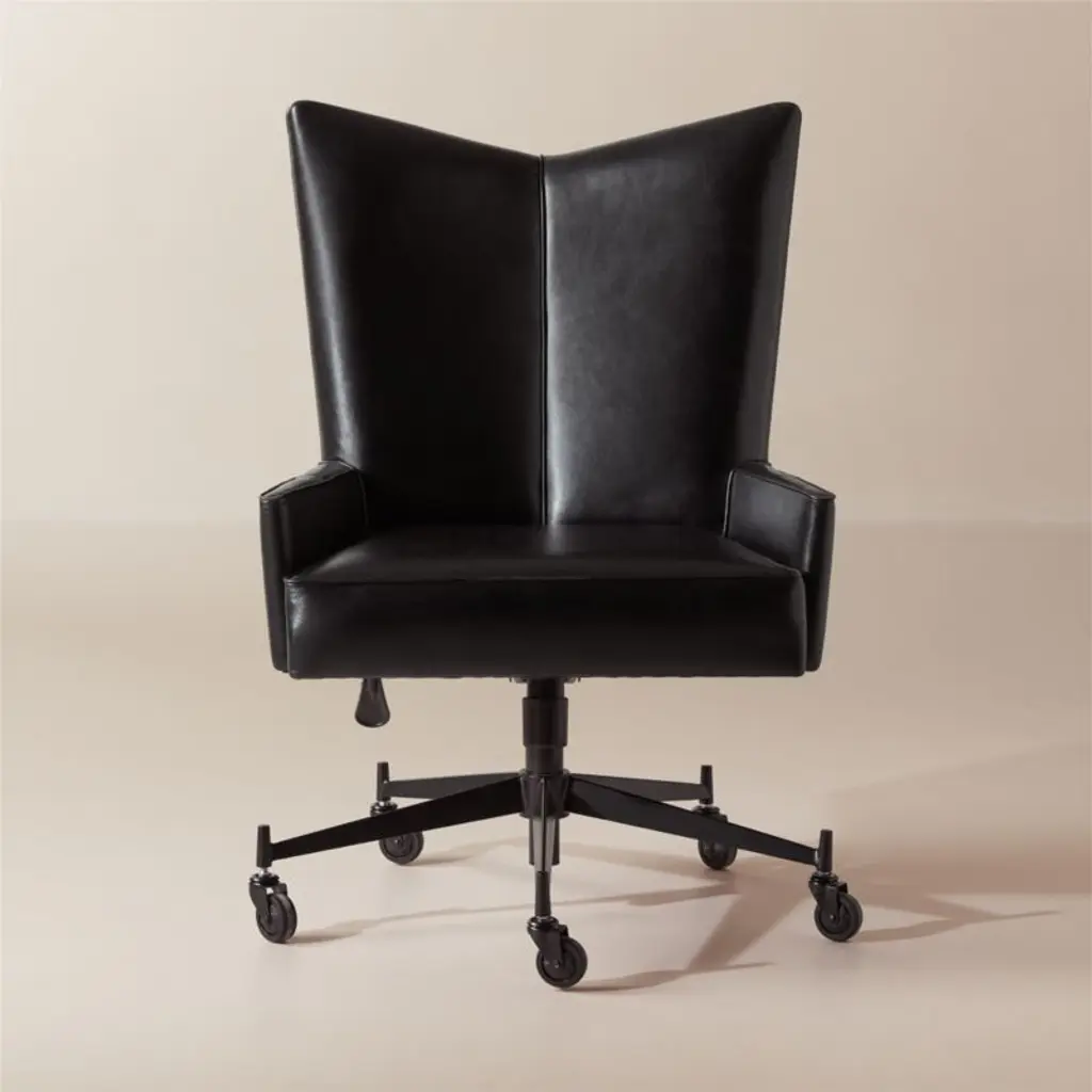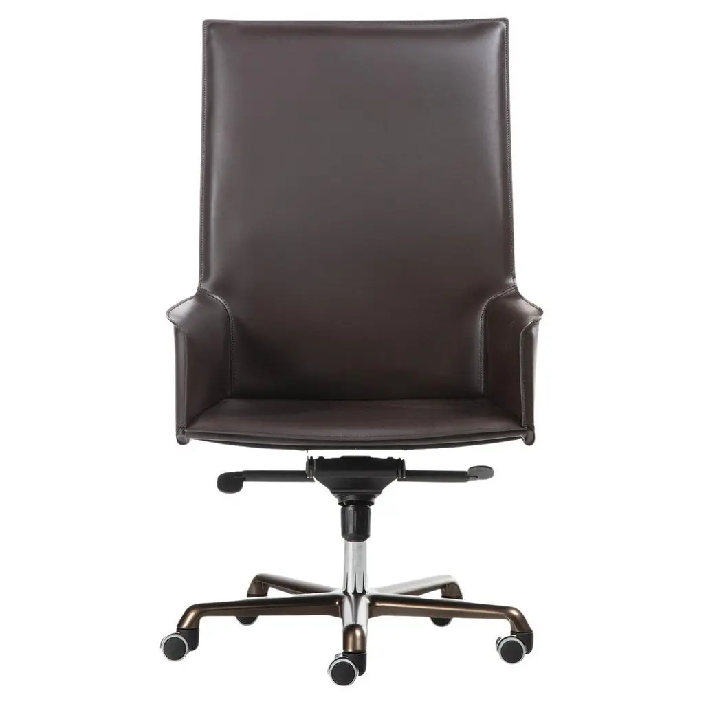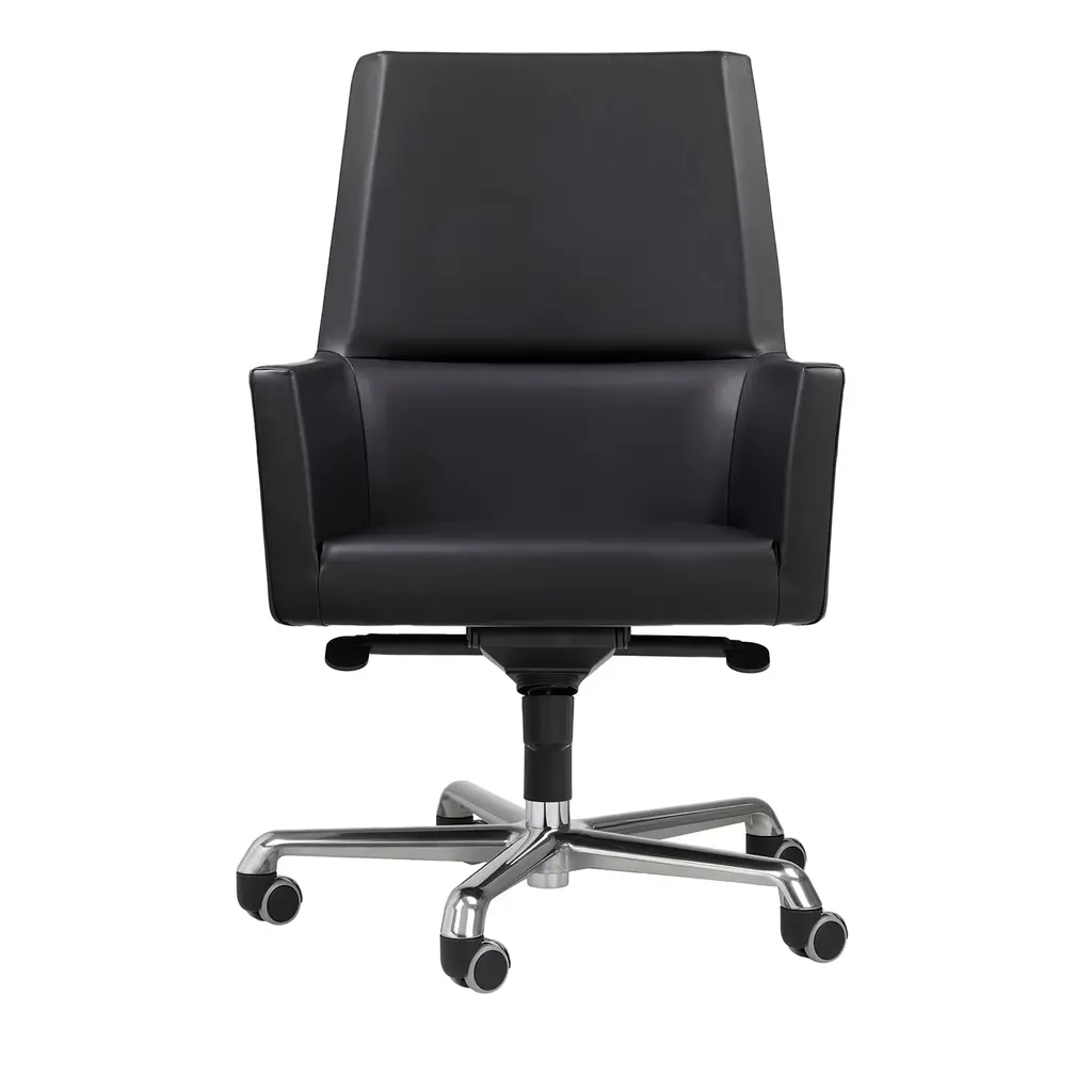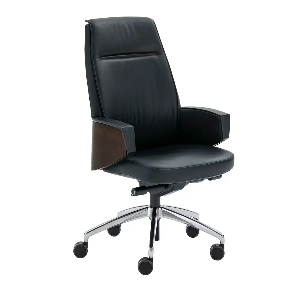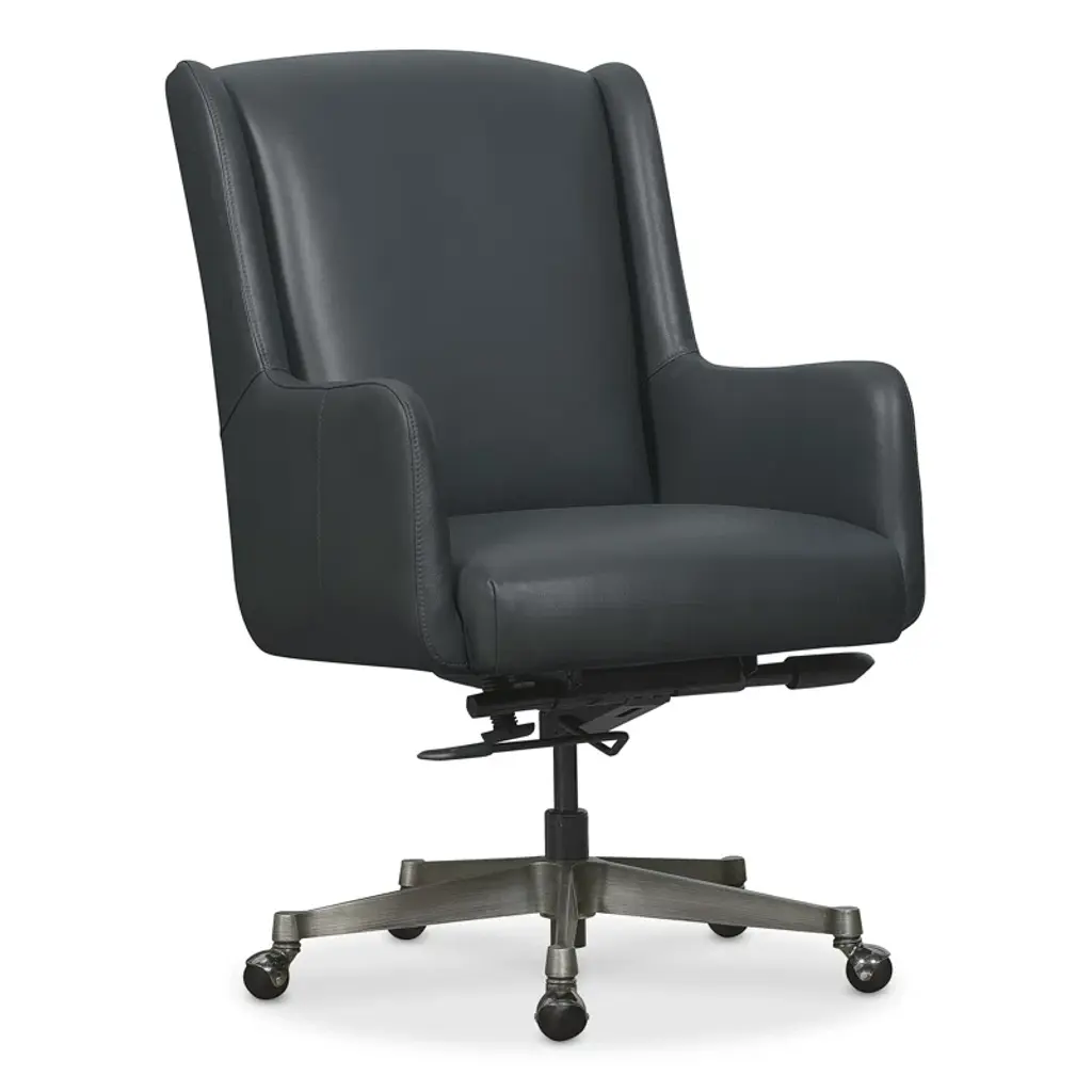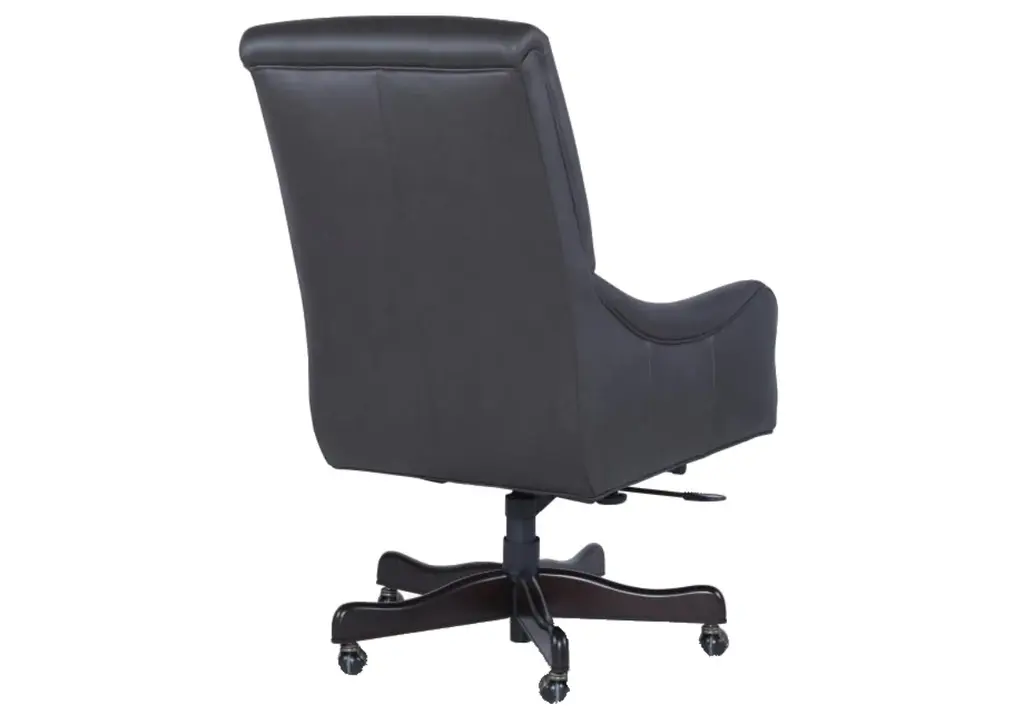 This executive office chair is a handsome addition with its tall, stately back and gently sloped arms. Its adjustable base and metal casters provide easy functionality, for ideal styling with a variety of desks.