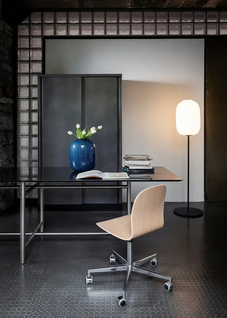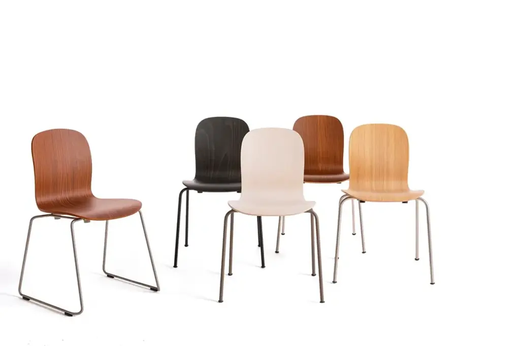 More than twenty years since the original design debuted, Cappellini is celebrating this best seller by Jasper Morrison by offering new models which represent a complete renewal in terms of the look and finishes: among these is the Tate Wood chair, a fresh and extremely versatile option.Part of a family which includes stackable chairs and stools of two different heights, with a high or low back rest, Tate Wood chair features a shell made of ash plywood with a mahogany or oak veneer (with a natural or stained white, wengé or black finish).The base is available in different versions: four legs with a satined stainless steel finish or matte satined lacquer in the shades of white, mud, anthracite, pumpkin, brick, grass green, petrol and Prussian blue; with a sled base, in satined stainless steel or matte varnished in white, anthracite or mud; with five polished chrome spokes, with feet or castors. The four-legged version in stainless steel can also be equipped with a reclinable table in thick black laminate.
