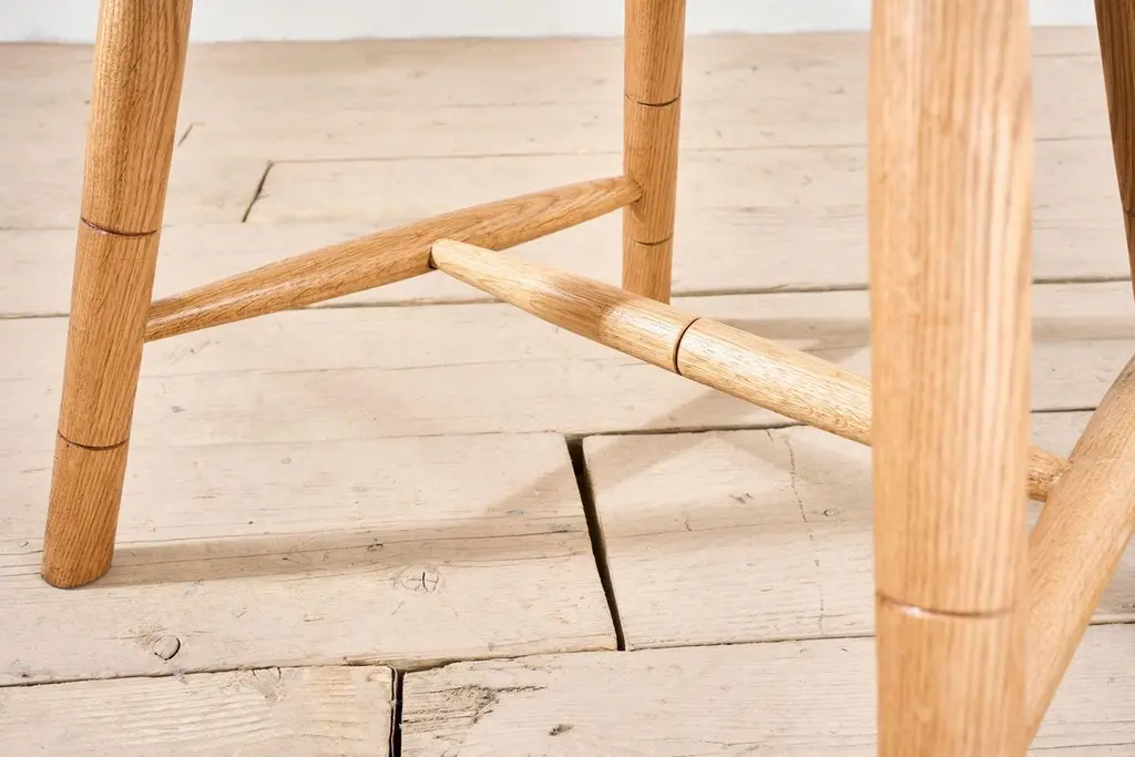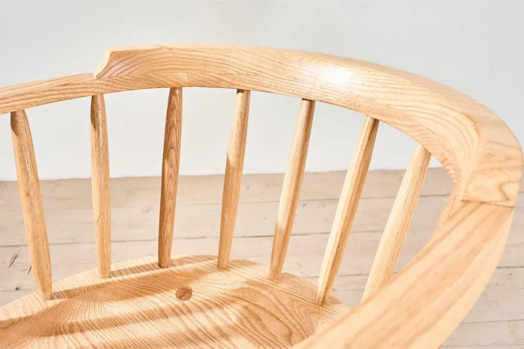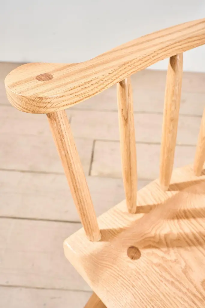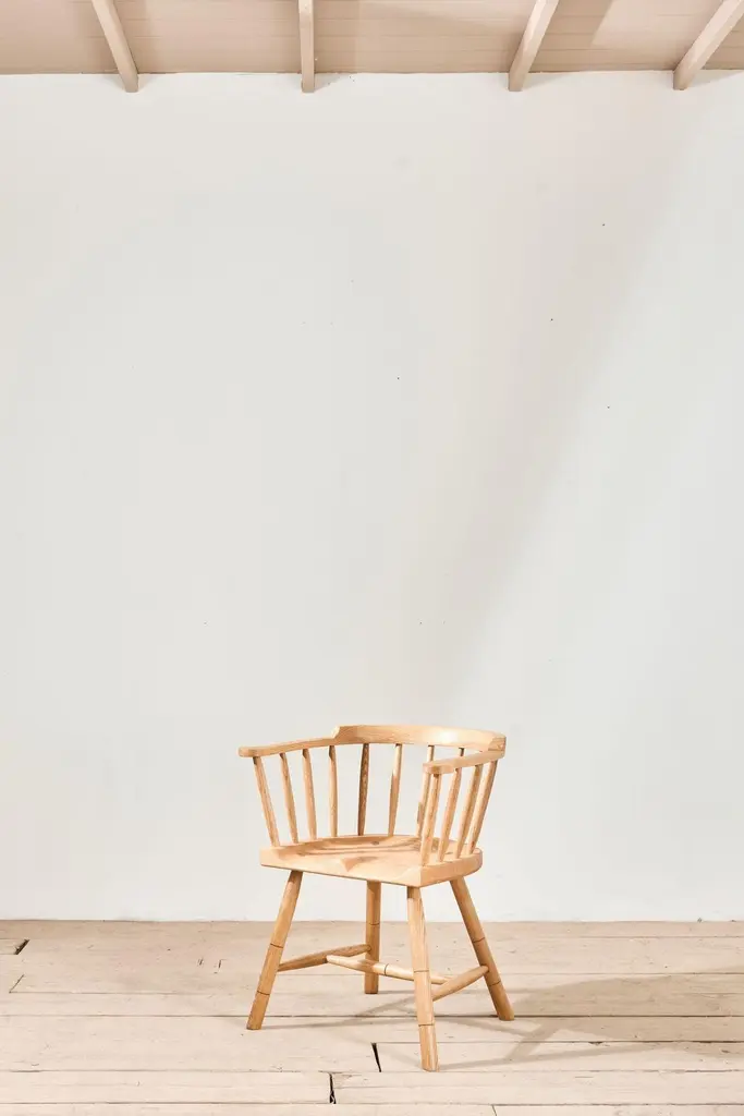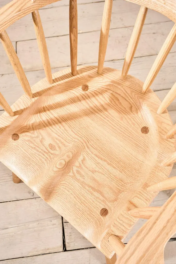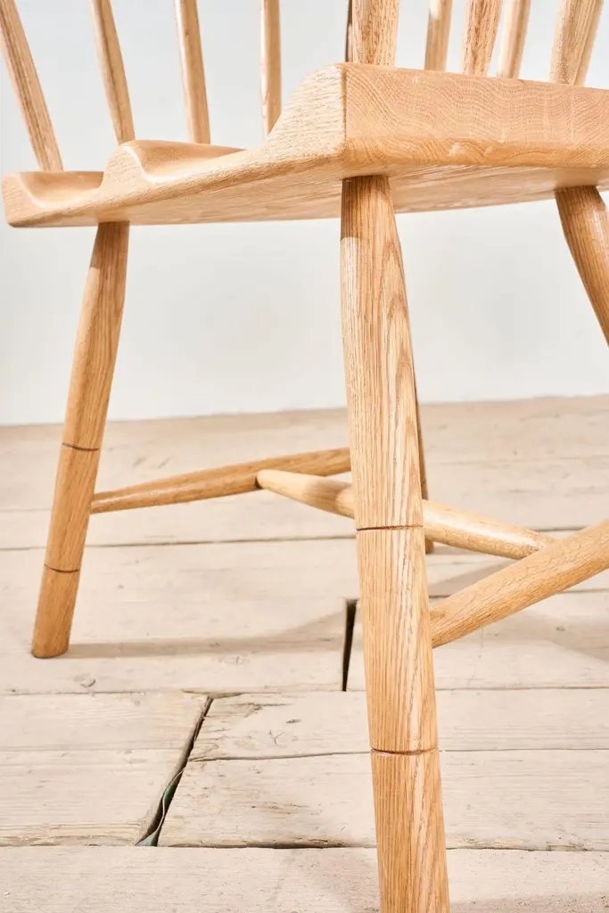This is our traditionally made solid oak 'Captains' chair made right here in Yorkshire by our fabulous carpenter Richard. The design is inspired by an original early 19th century example we found.We wanted this chair to be a go too seat for your home. Be it as a desk chair or as part of a set around a dining table. The whole piece has been hand shaped to create as authentic feel as we can. These chairs were never meant to be perfect so we wanted to keep the character and folkyness you get from an original. We hope this becomes a life long addition to your home and it will take on more character and charm from years of use.Made from American Red oak for its durability and strong grain.Finished in a clear oil to protect the table against moisture.Height 74cm Width 63cm Depth 54cm Depth of seat 40cm Height of seat 42cmLead time 4-6 weeksAvailable in different finishes.