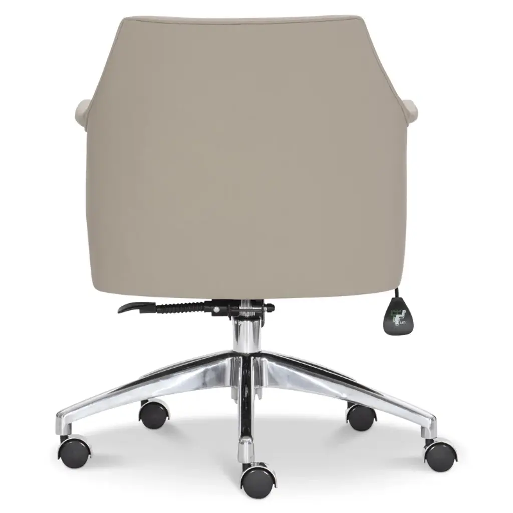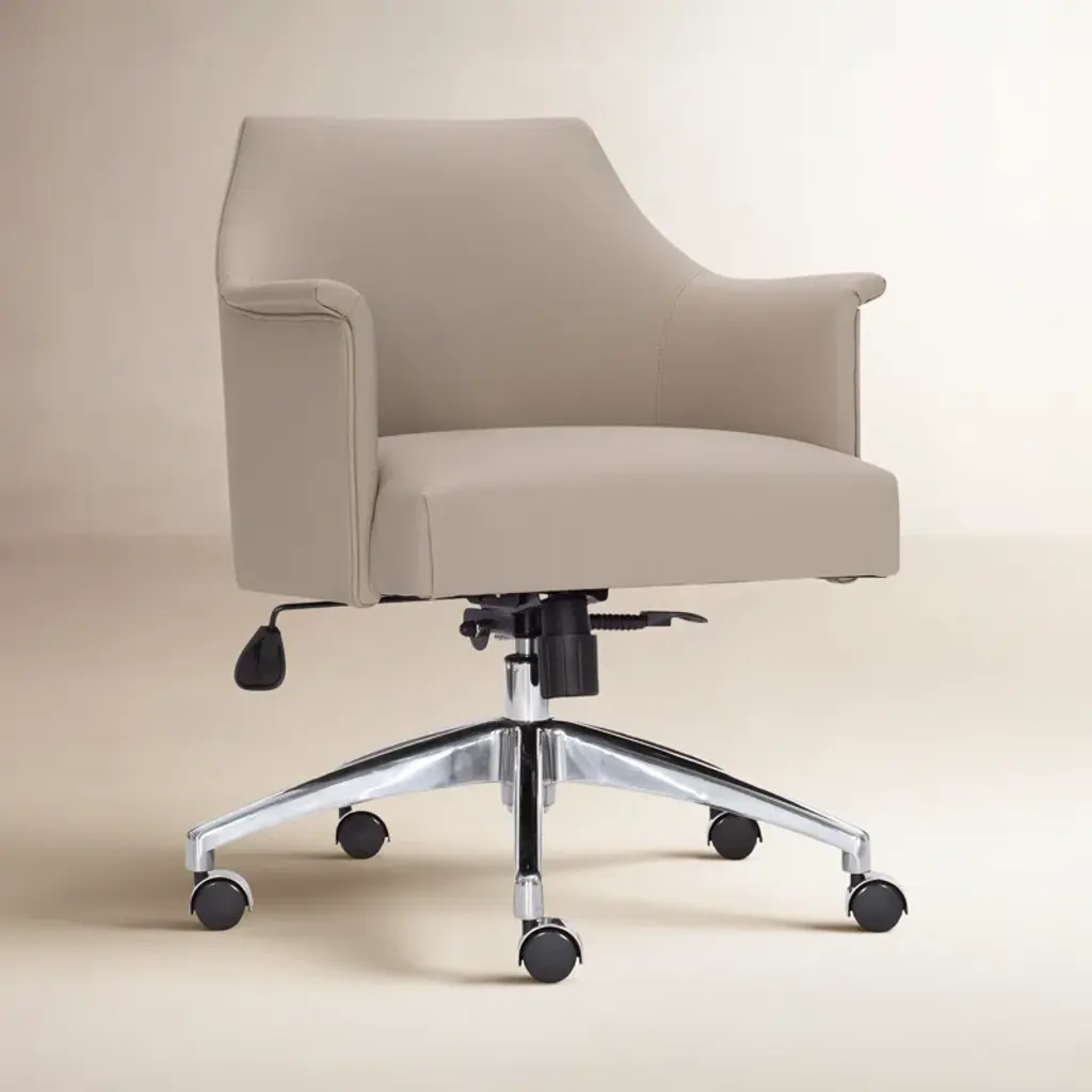 Bernhardt Workspace combines the aesthetics and principles of interior design with the functionality of a home office. Designed for comfort, convenience and style, the Tiemann office chair features a gently curved back and flared arms. With adjustable height settings, five casters and a tilt mechanism, the stainless steel swivel base allows effortless motion in the workspace.