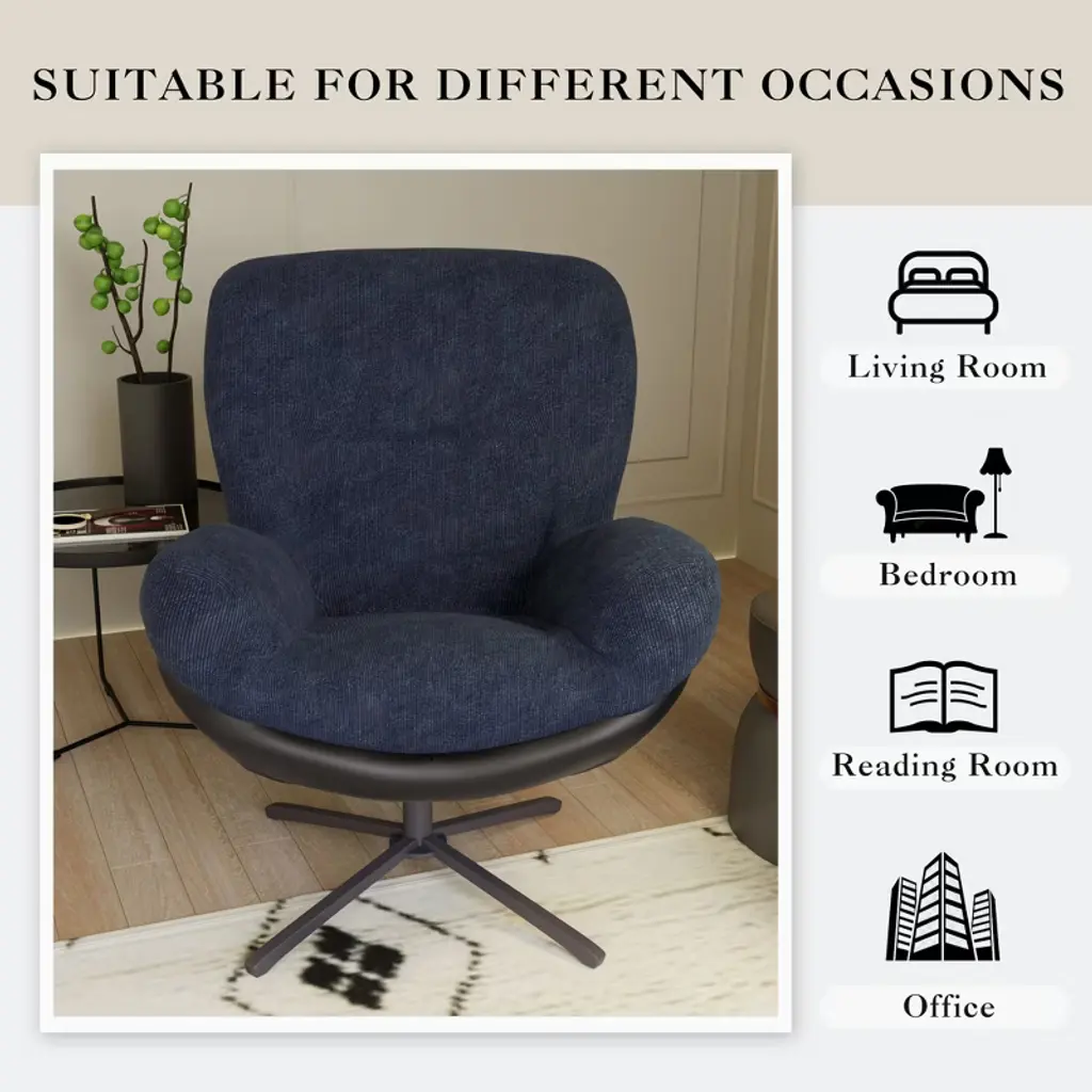 Upgrade your space with the perfect blend of comfort, sophistication, and flexibility. The 360¡ã Swivel Office Chair is thoughtfully crafted for modern living, featuring a stylish mix of plush chenille fabric and sleek faux leather accents. Its dual-material design not only enhances the visual appeal but also delivers luxurious comfort for daily use. Supported by a sturdy black metal base and a smooth 360-degree swivel mechanism, this chair offers effortless mobility without the distraction of wheels¡ªperfect for small spaces, home offices, or chic reading corners. Whether you're relaxing with a book, working from home, or chatting with guests, this versatile chair delivers ergonomic support and elegant style in one modern package.
