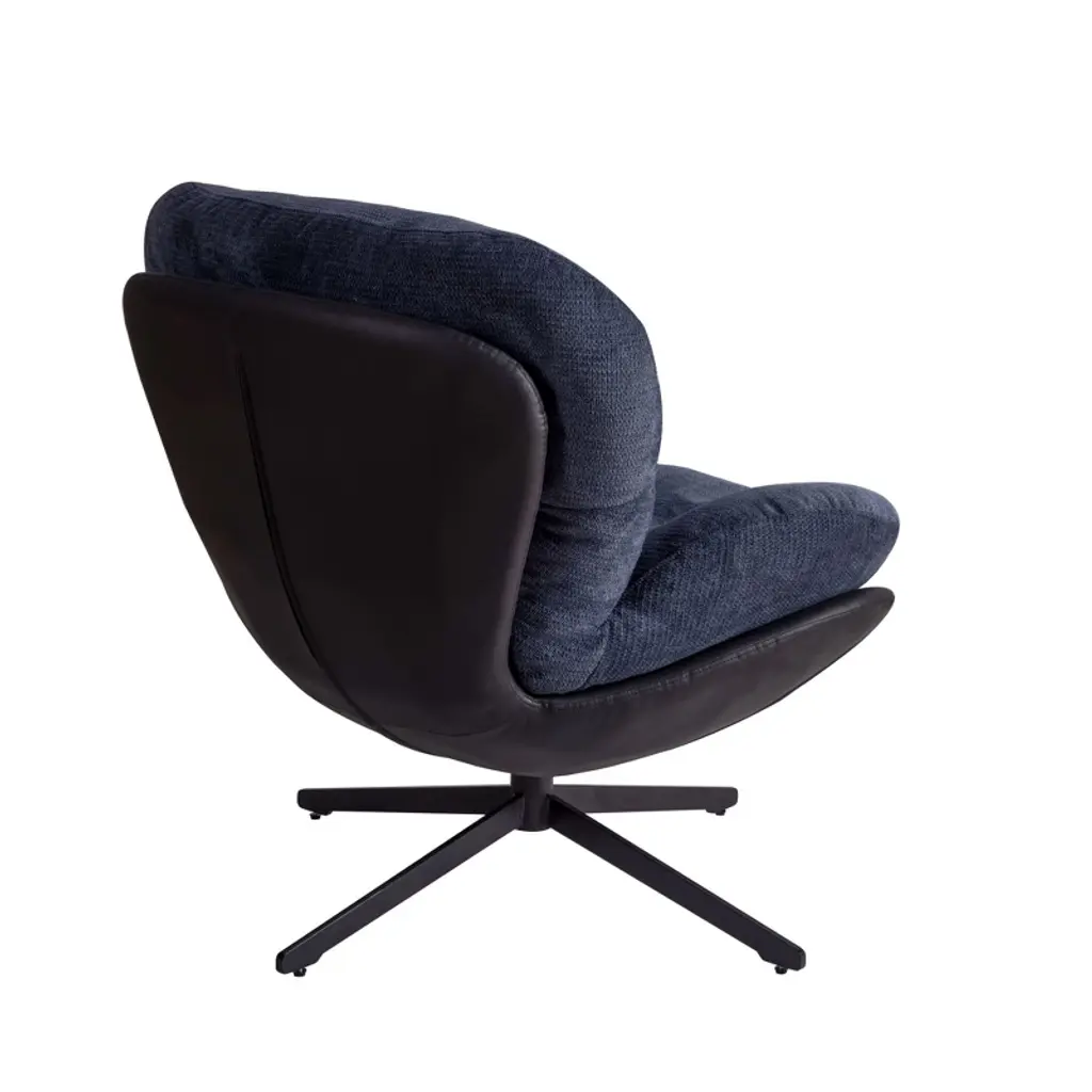 Tiramisubest 360¡ãswivel Office Chair W/ Chenille & Faux Leather, No Wheels, Black Metal Base For Multi-space (Black/navy Blue)