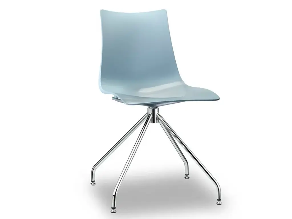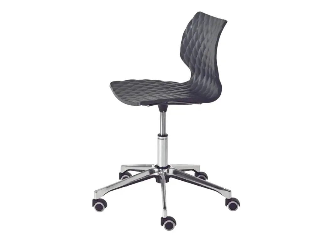 Swivel chair with 5 ways aluminium frame. Polypropylene shell.The last project by Francesco Geraci, Uni has become an icon with the same elegance of its designer. Polypropylene seat available in ten different colours with an extensive range of steel, wood and aluminium frames. UNI stands out for its effective padded-look texture on the front and shiny fi nish on the back.
