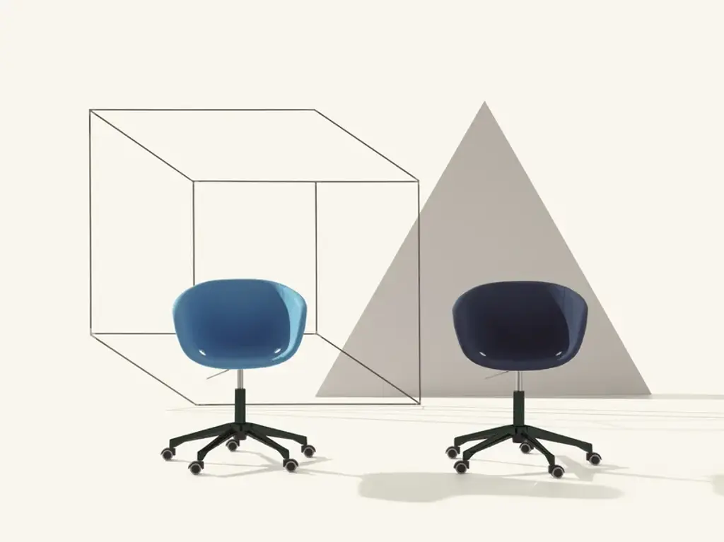 Swivel armchair with 5 ways on castors, aluminium frame. Upholstered polypropylene shell.Metalmobil presents Uni-Ka, the armchair which adds a new dimension to the world of tub chairs thanks to its padded effect texture derived from the Metalmobil’s best-seller Uni. Uni-Ka is a product which captivates with its rounded and welcoming shape; a go-anywhere chair, as the polypropylene seat colour variations and the various choices of steel frame make it ideal for all gatherings, and particularly suitable for restaurants and outdoor premises.
