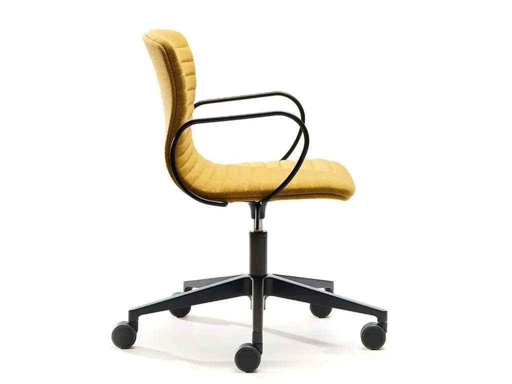Union is a low or medium back chair with swivel and elevating seat, fixed armrests in aluminum or metal tube, aluminum base and rubber wheels Ø65 mm. Shell with quilted padding.Armrests U3 | Aluminium armrests and base.U5 | Steel armrests.CERTIFICATIONSEN 16139 / EN 1022 / EN 1728