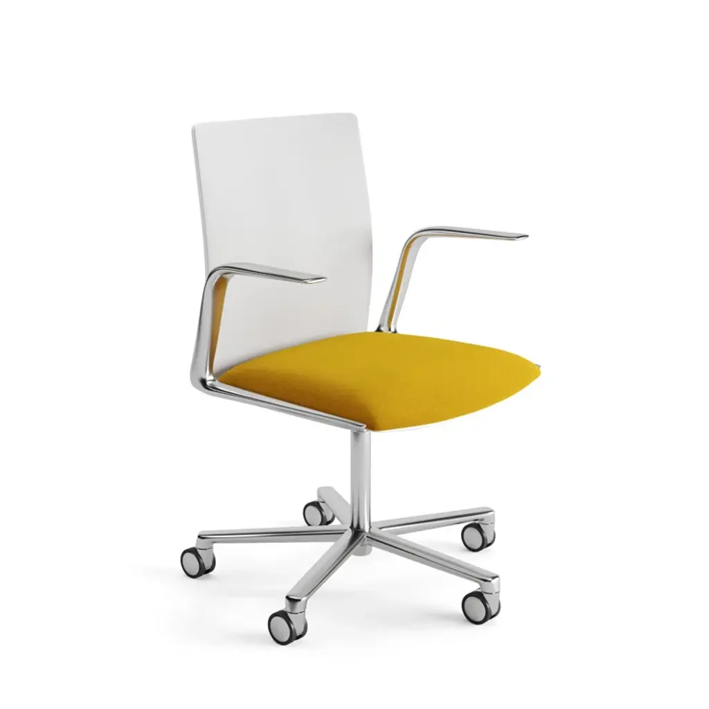 The Unix Chair by Antonio Citterio is available with a sturdy five-star base on castors, ideal for studio offices and informal office areas. The height-adjustable, swivel chair comes with a technical knit or fabric cover.Material description- Seat frame and armrest sleeves: monochrome polypropylene in basic dark or soft grey.- Seat and back cover: Plano fabric or one of the 3D spacer fabrics Diamond Mesh (mesh look) or Silk Mesh (solid look). For Silk Mesh covers in soft grey, mauve grey and ice grey, the reverse side is in soft grey. For Silk Mesh covers in brown, nero and asphalt, the reverse side is in nero. For Silk Mesh covers in avocado, brick and dim grey, the reverse side is matched to the frame colour (soft grey or nero).- Five-star base: polished die-cast aluminium with double castors (Ø 60 mm). Swivel mechanism, height adjustable.The Unix Chair is the ultimate all-rounder for office environments. It can be used behind a desk as a task chair or in front of it as a visitor chair. Unix is available in different versions that are ideal for conferences and meetings. And it is suited for touchdown workstations as well as waiting areas. The chair’s structural design and the innovative padded mesh cover ensure a high level of comfort. Thanks to a wide range of colour options, it works equally well in sleek, functional office settings and in more expressive and personal work environments.