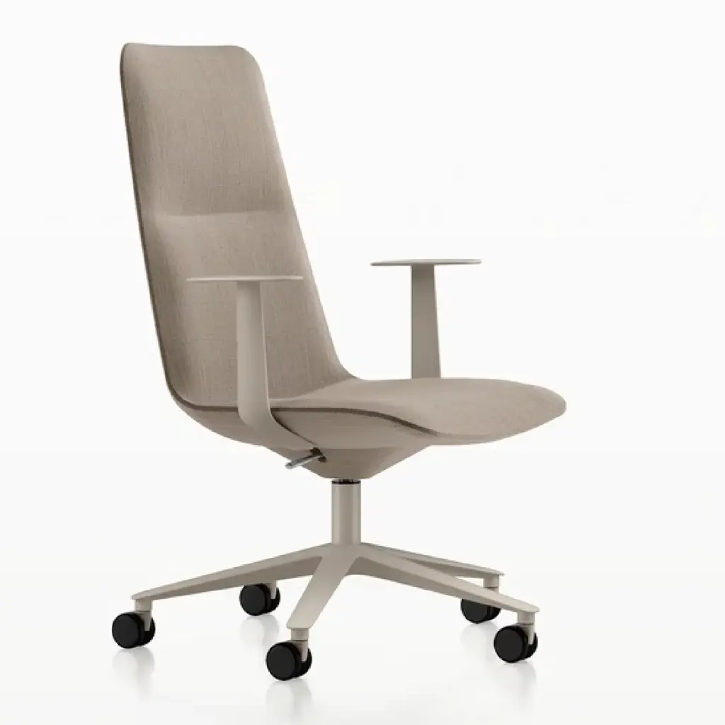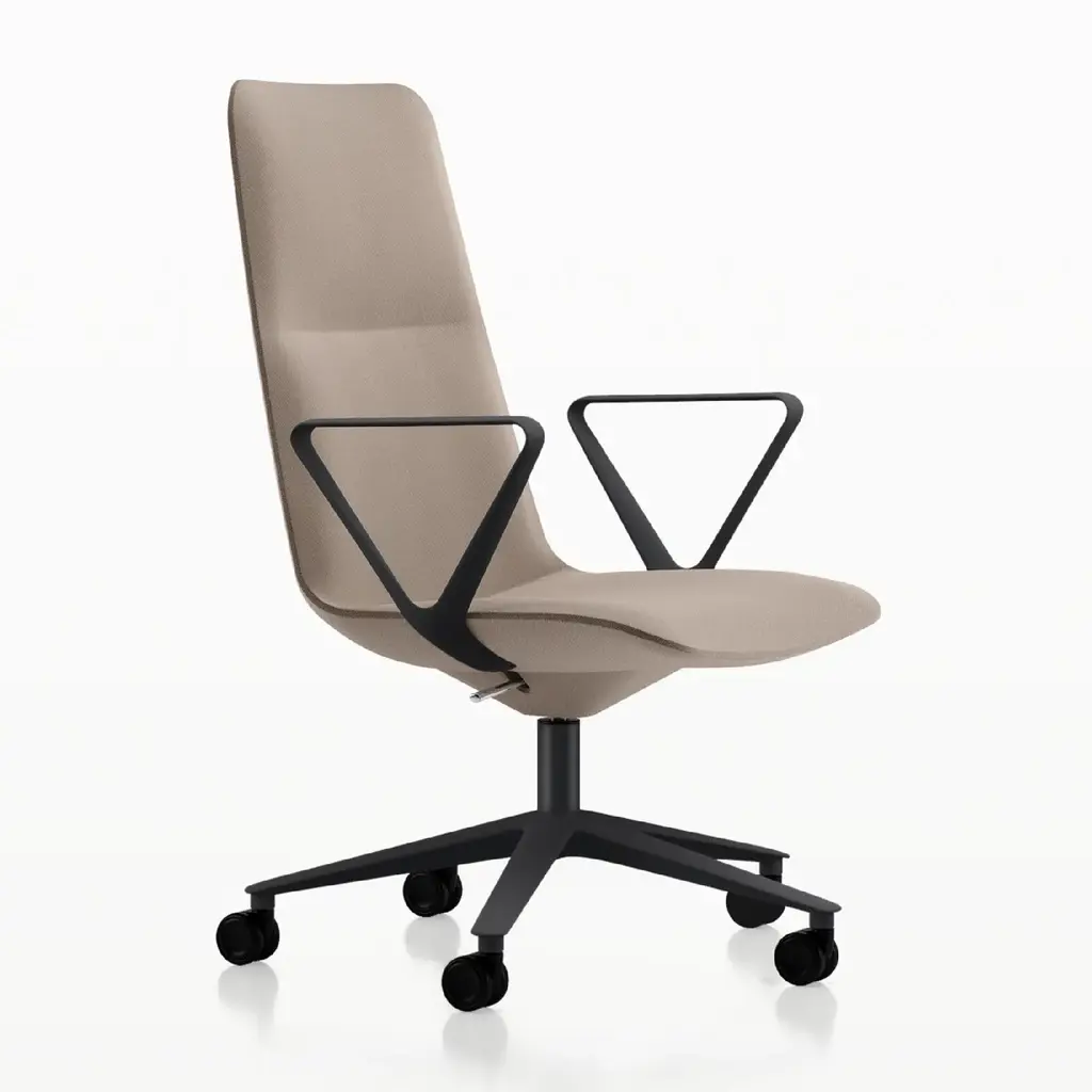 Elevate your office with our Slim office medium armrest chair. With its "T" shaped arms and soft braking castors, this chair provides comfort and style. The die-cast aluminum structure is both durable and elegant, while the seat shell is made of high-quality materials such as eco-leather or fabric. Upgrade your work space today.