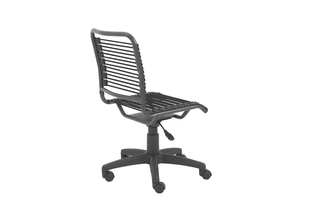 The Uppsala Black And Graphite Natural Low Back Bungee Rolling Office Desk Chair is the perfect blend of modern design and ergonomic comfort. This chair is designed to enhance your gaming and office experience with its adjustable and armless structure, ensuring you have the freedom to move effortlessly. The round bungie cords offer a unique seating experience, providing support while maintaining flexibility.