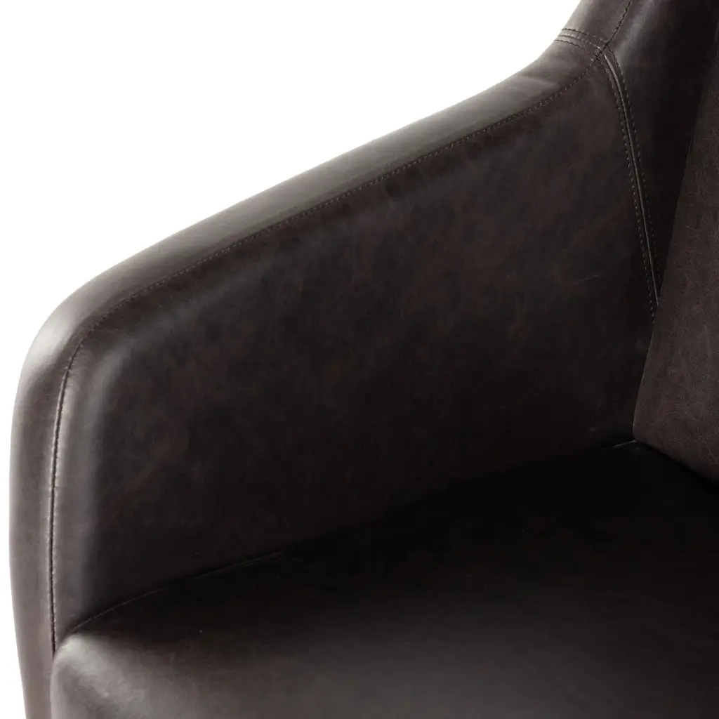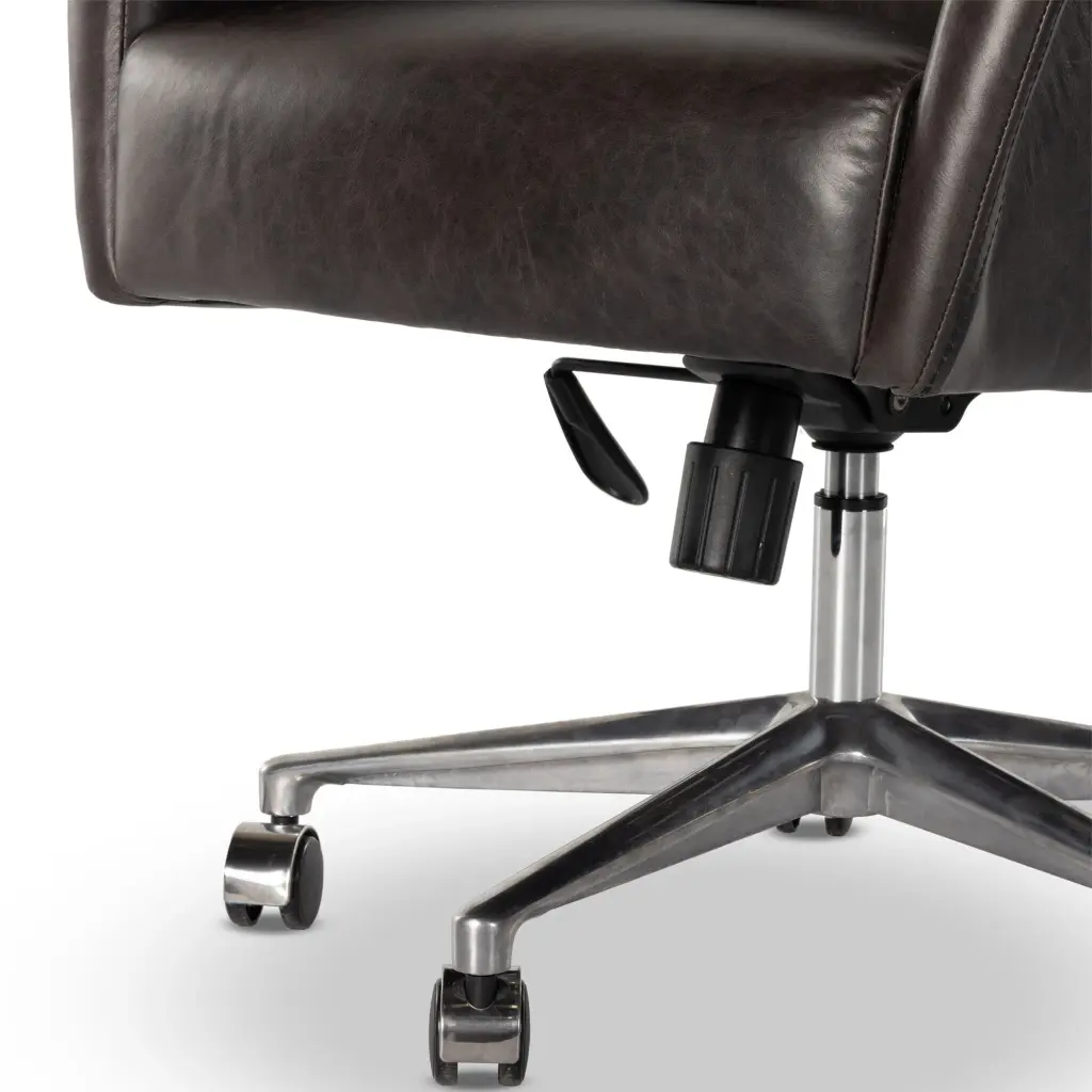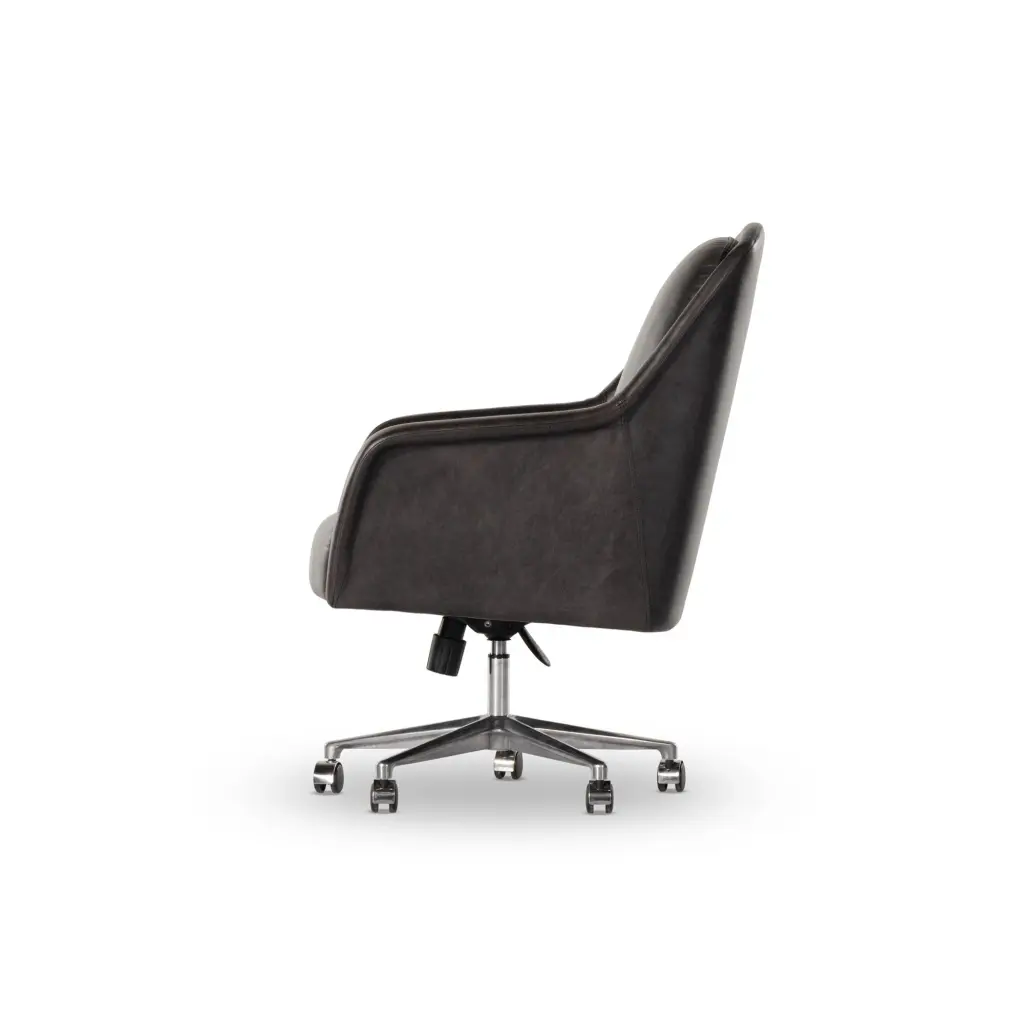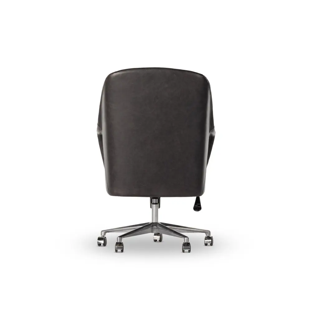 Fully upholstered in black top-grain leather, this desk chair brings an executive look to the office, finished with a 360-degree swivel atop casters. The Verne collection also includes a fabric desk chair (sold separately).