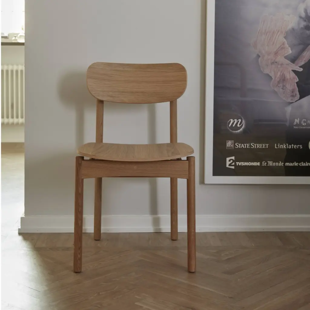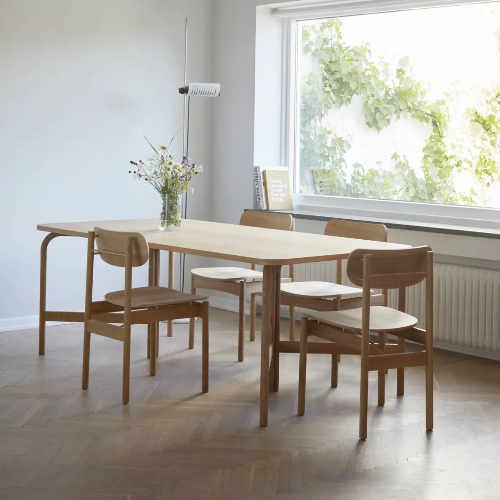 A glance at designer Chris Liljenberg Halstrøm’s dining or desk chair reveals its all-too-pleasing proportions and comfortably curved seat and backrest. Fashioned in sustainably sourced oiled oak, the golden wood naturally contrasts with the brass detailing of the transverse rod that indicates where to pull out the chair. Rounded legs continue up into the backrest and form a small hook for hanging a purse, another discreet touch. Named “Furniture of the Year” by the Danish Design Awards, Vester’s many fine points underscore its timeless character.