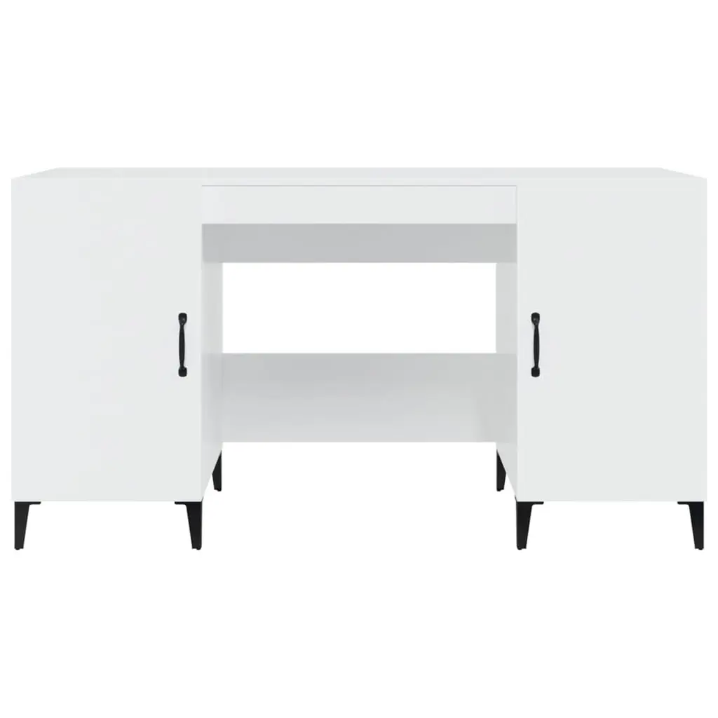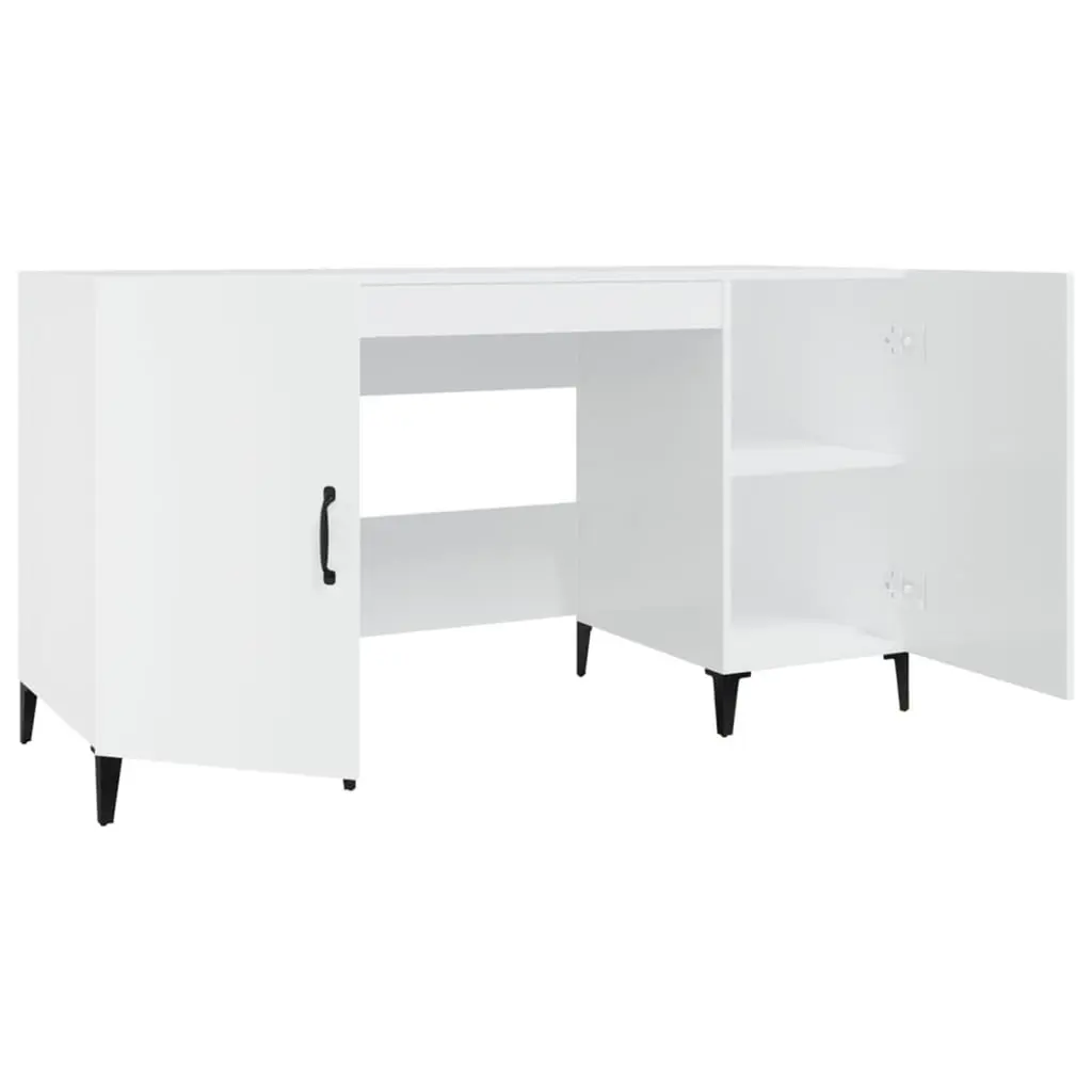 Vidaxl Desk High Gloss White Engineered Wood, Metal Large Desk