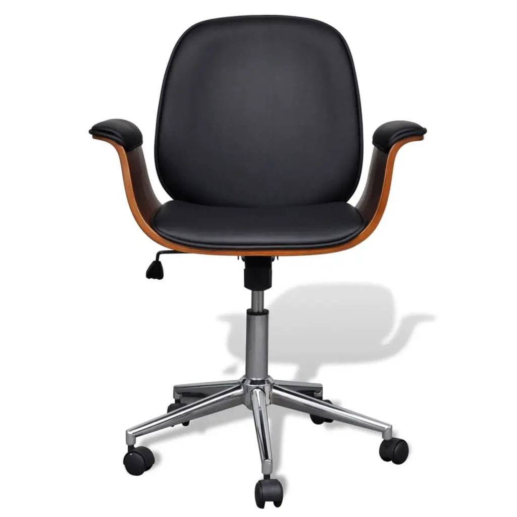 Vidaxl Office Chair Black And Brown Faux Leather, Bent Wood, Chromed Iron