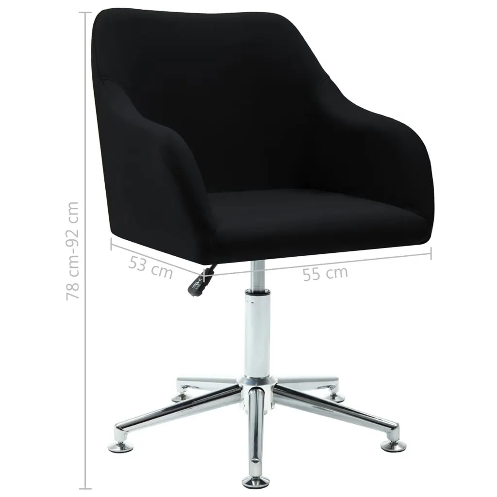 This swivel office chair mixes modern style with clever design, making it spot on for any workspace. With its sleek black fabric and chrome legs, it not only looks fab but also keeps you comfortable while you're working on your computer or writing for ages. The height-adjustable feature means it can fit anyone, so you'll find your perfect seating position in no time. Plus, the 360-degree swivel makes moving around a breeze, so it’s a great add-on for home or the office. Ergonomic Comfort: Built with your comfort in mind, this chair has padded armrests and a comfy cushion. The armrests are well-cushioned, providing solid support for those long sitting sessions, which is perfect for busy professionals and students alike.Height Adjustability: With an easy lever, you can change the height from 30.7 inches to 36.2 inches without any hassle. This feature makes it a good fit for different desk heights and encourages better posture for healthier sitting.Stylish Aesthetic: Its matte finish and trendy design create a look that fits well in different office styles. Whether in a workplace or a home office, it adds a touch of elegance.Swivel Base: The 360-degree swivel helps you move around your workspace smoothly. Just turn and reach what you need without getting up, which makes multitasking easier.Stable Construction: Built with a strong steel base and plywood frame, this chair is made to last. Its sturdy legs keep you stable, so you can work without any worries.