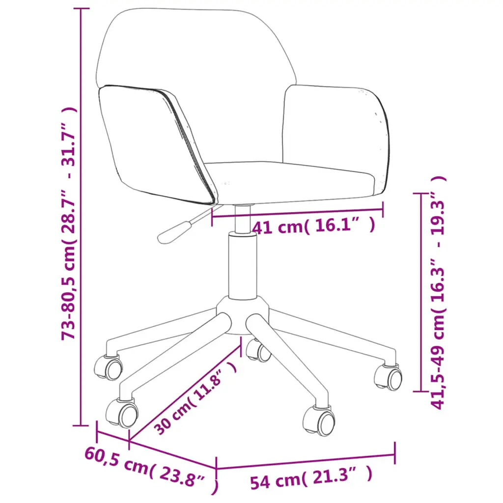 This Dark Grey Swivel Office Chair is a fab blend of comfort and modern design, perfect for all sorts of spaces like offices, living rooms, and bedrooms. Its made-from-polyester fabric and matte-finished frame give a cool low-profile look that upgrades your workspace while keeping it friendly for users. Adjustable Height: You can easily adjust the height from 28.7 in to 31.7 in, perfect for finding the best seating position for comfort over long periods.Tailored for Flexibility: It has a 360-degree swivel, allowing smooth movement for easy interactions and multitasking, making it a top pick for your workspace.Breathable Fabric: Made from smooth polyester upholstery, it keeps things airy and comfy by stopping you from overheating.Robust Framework: Sturdy five-leg design provides great stability, supporting up to 265 lbs for all sorts of users.Contemporary Style: A smart modern look mixed with practical functionality, making it a stylish choice for work or home.