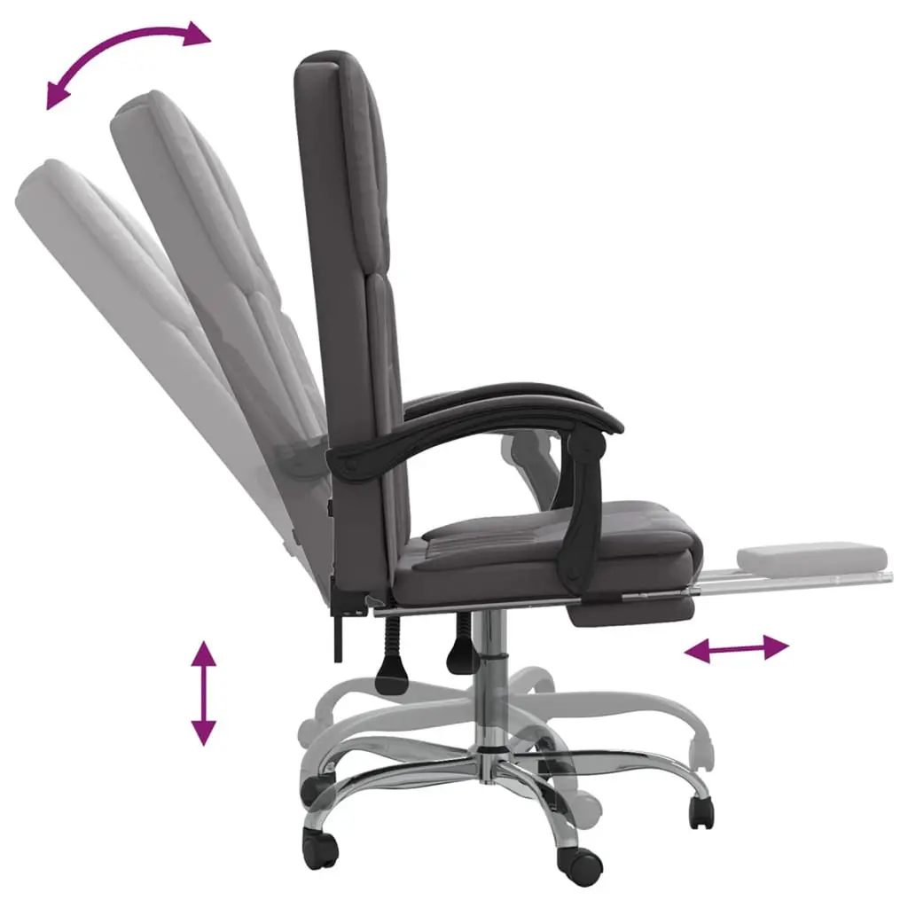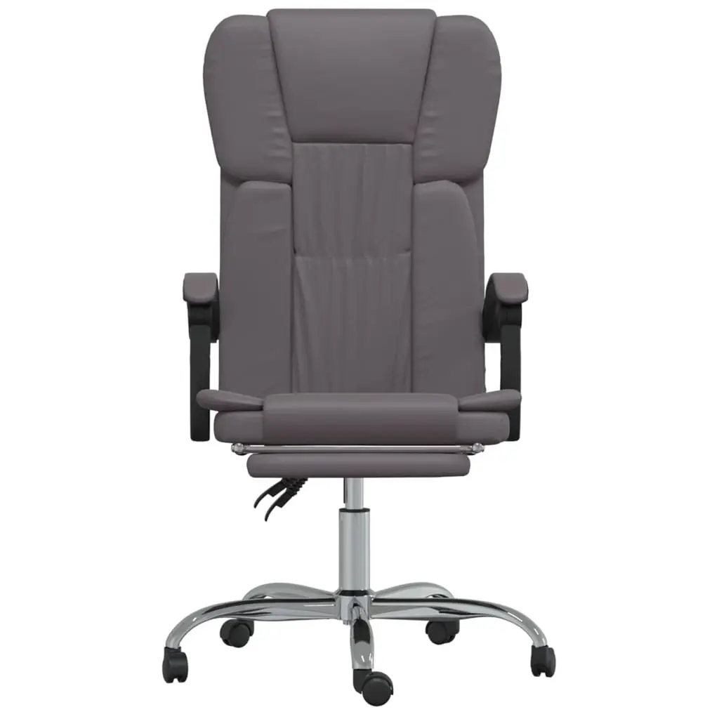 This reclining office chair mixes chic style with practical features, making it a great fit for any modern workspace or living room. Its plush grey faux leather gives it a stylish touch that goes well with different decor styles, while the adjustable bits make sure you're comfy for those long hours of work or play. Comfortable Seating: The memory foam cushion shapes to your body for top comfort, easing pressure points during long sittings.Reclining Feature: Its reclinable backrest lets you kick back and chill whenever you need a breather from work.Versatile Use: Perfect for home offices, corporate spots, or gaming corners, this chair fits different activities, ensuring a good time no matter what you’re up to.Stylish Design: The sleek grey finish and modern shape boost any room’s decor, adding a touch of elegance.Sturdy Build: Made of tough materials, including a strong metal frame and quality faux leather, this chair looks good and meets your seating needs.