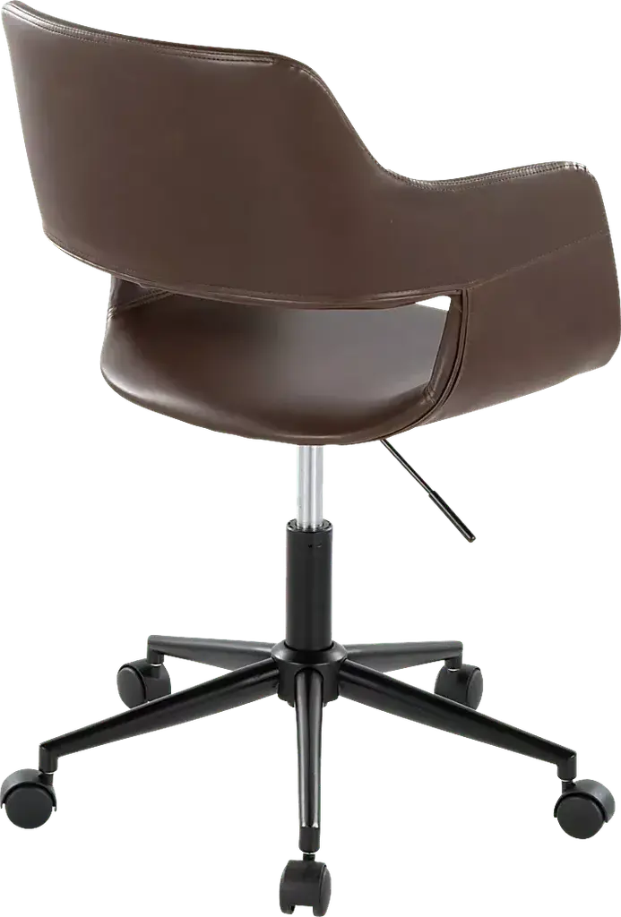 With a beautiful contemporary design, the Whisp desk chair features a low backrest with a slight opening, ergonomically designed to fit your body, armrests for additional comfort, and an adjustable base. With gorgeous upholstery, the Whisp desk chair will look great in any home office. Customer assembly required.