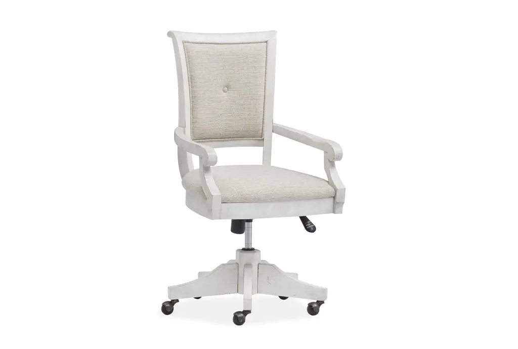 This White Fully Upholstered Swivel Office Chair is a classic addition to any office space, featuring an adjustable seat height and a weight capacity of 300 lbs. Crafted from pine veneer and pine solids, the chair's alabaster color adds a touch of elegance to its functionality.