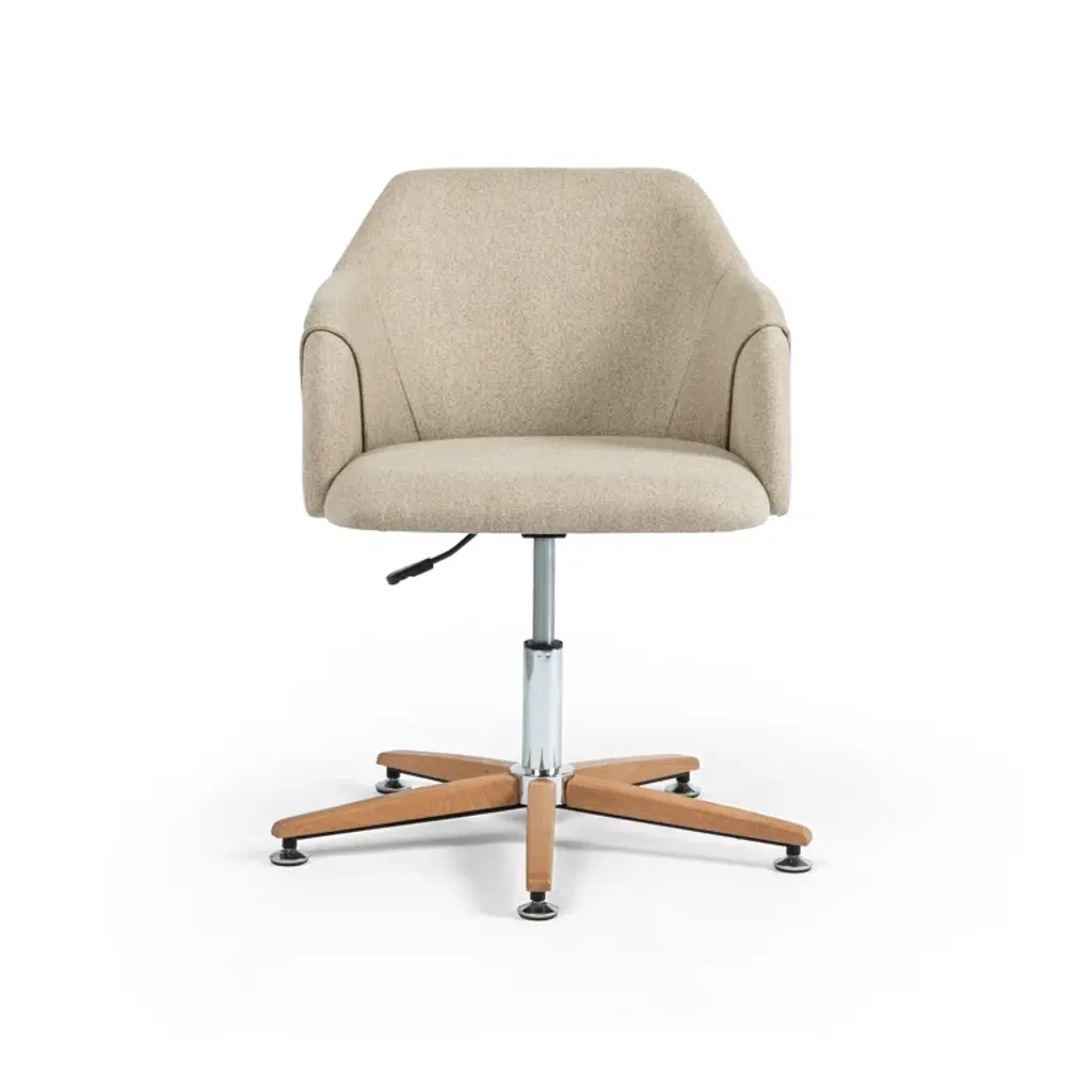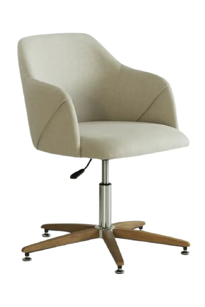 Koda keeps your back well supported with its ergonomically designed frame upholstered in fresh off-white linen. Smart dark-stained ash paneling rests neatly atop stainless-steel legs, accentuating a classic Art Deco look. Sitting on smart floor glides, this desk chair is height adjustable for extra versatility.