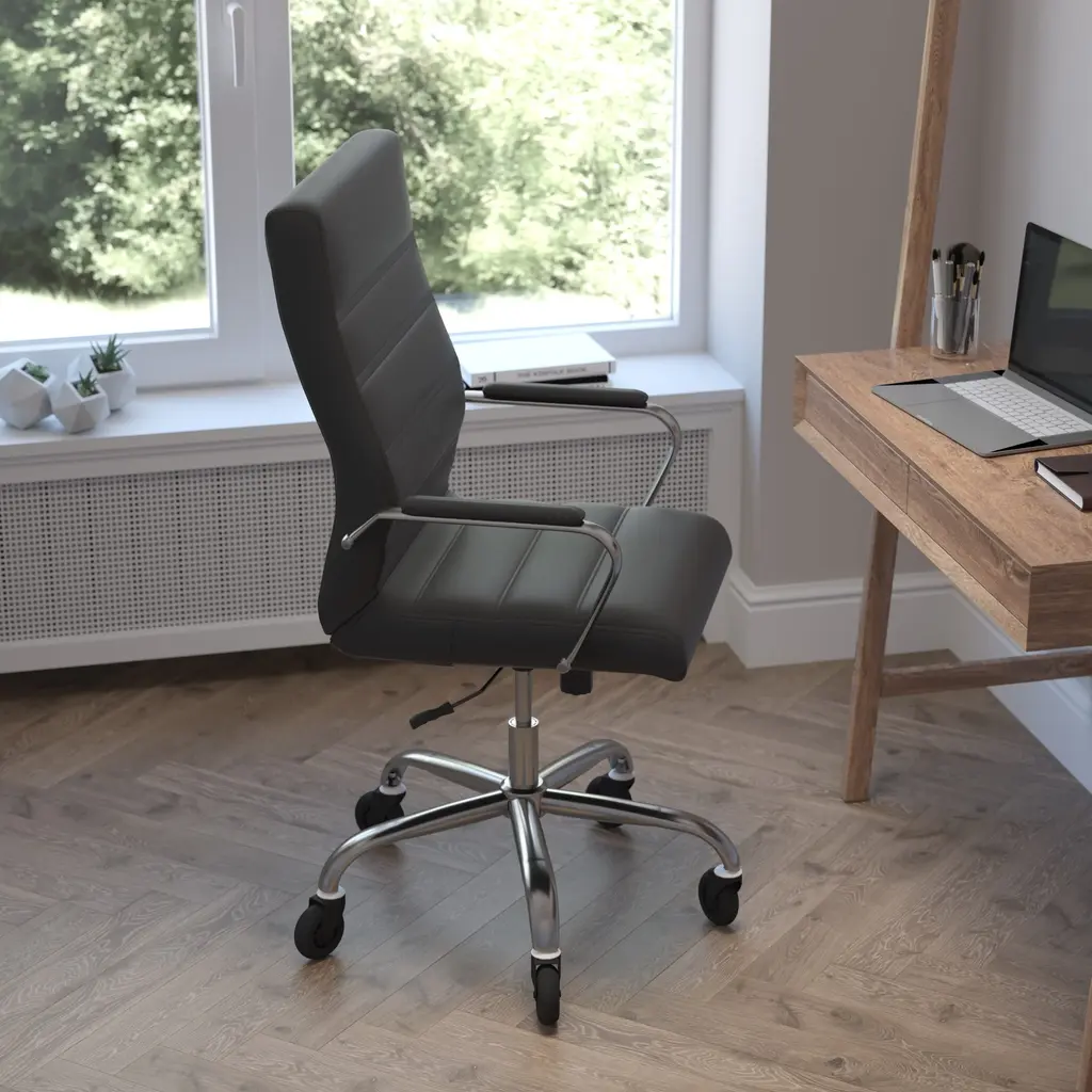 Whitney High Back Executive Swivel Office Chair With Black Frame, Arms, And Transparent Roller Wheels