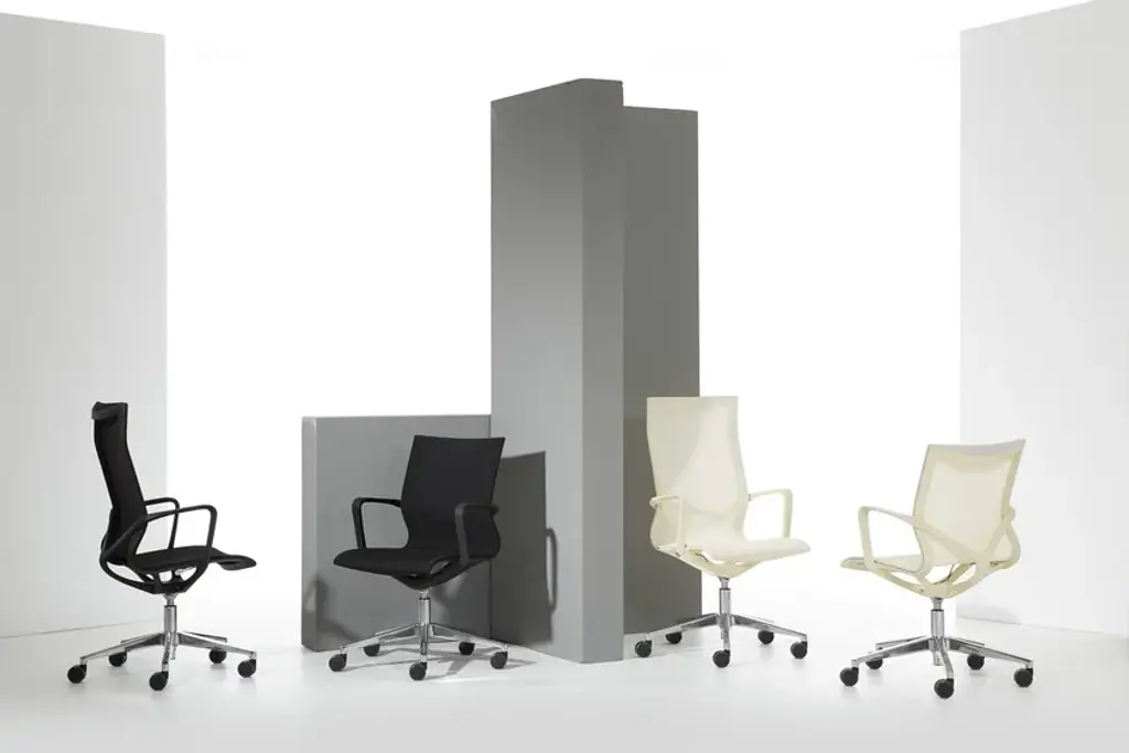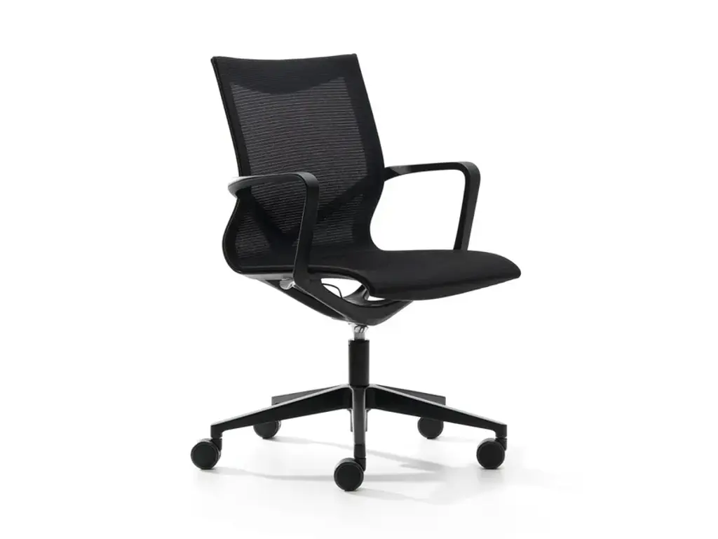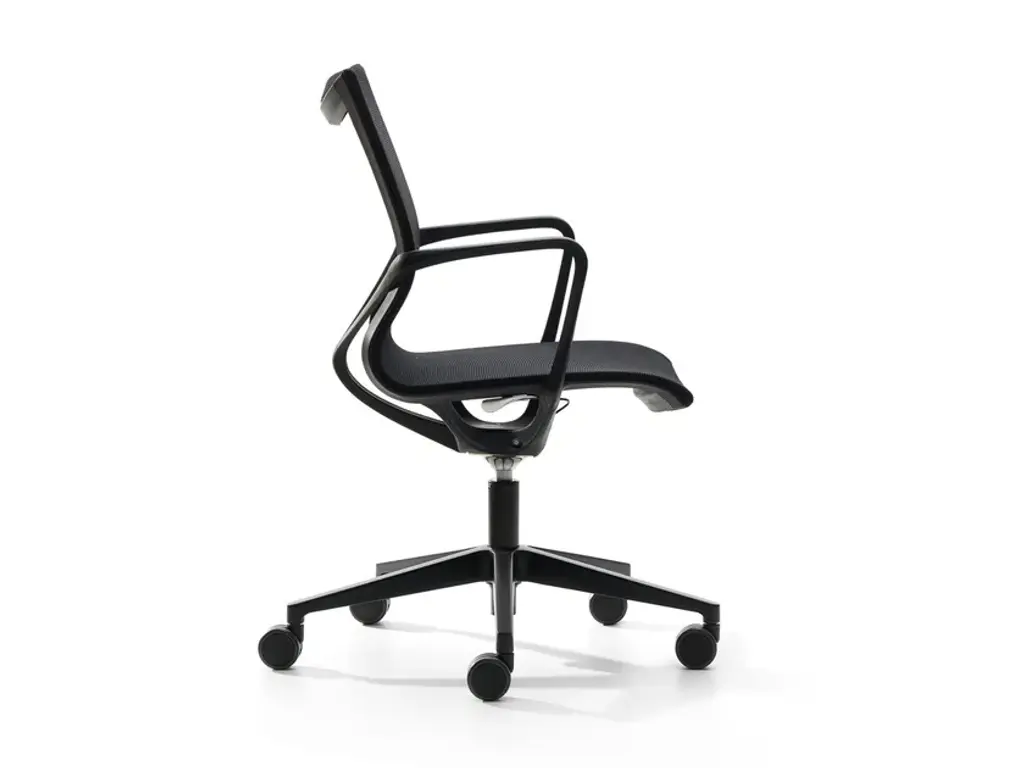 Yalta is a medium back armchair, free tilting, swivel and height adjustable, polyamide shell upholstered with self-supporting mesh cat. RP, fixed polyamide armrests, rubber Ø mm. 65 castors.COLORS & FINISHINIGAvailable with black colour structure and mesh or with ivory colour structure and meshCERTIFICATIONSEN 1335