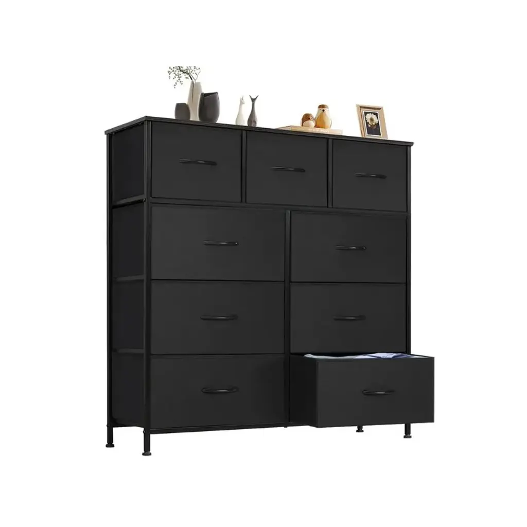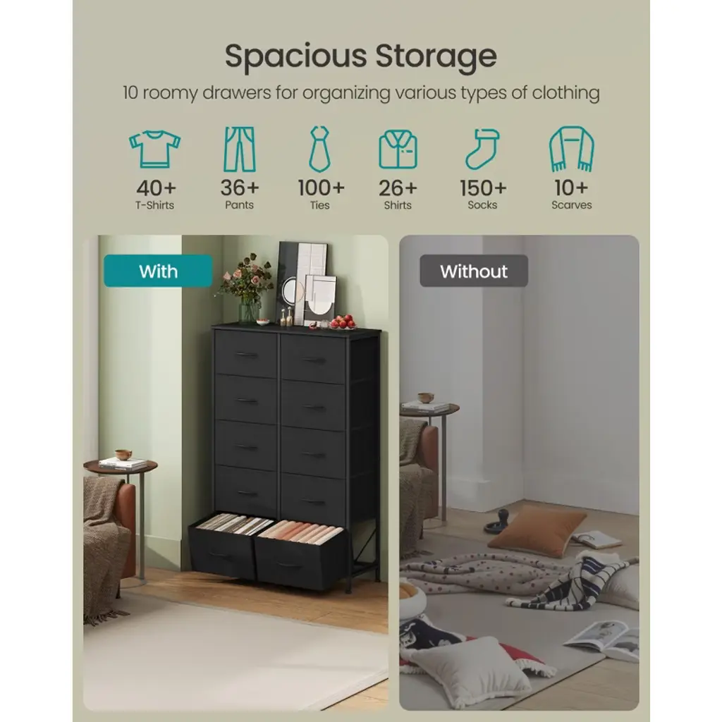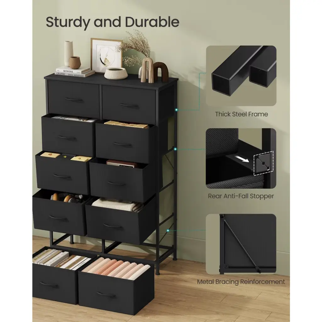 10-drawer Fabric Dresser With Steel Frame, 66 Lb Top Load Chest Of Drawers, Multi-use Storage Organizer, Black