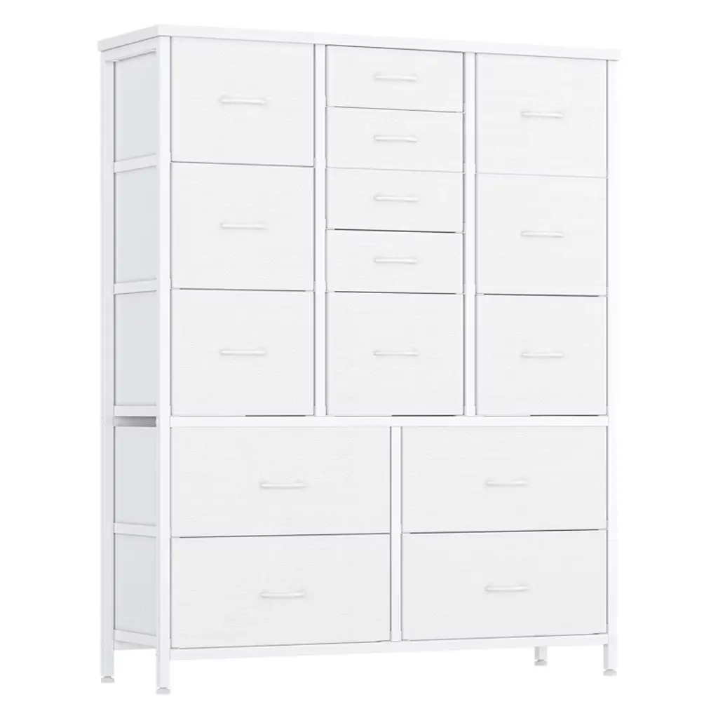 Designed for versatile storage, this 10-drawer organizer combines a sturdy steel frame with MDF-reinforced non-woven fabric drawers, offering concealed space for personal items with each drawer supporting 11 lbs and the top holding up to 66 lbs. Ideal for bedrooms, closets, or entryways, it includes adjustable feet and an anti-tip kit for stability and safety. The rustic brown and black finish complements modern decor, and assembly is quick and hassle-free. Product Size: 11.8"D x 30.2"W x 45.9"H (30 x 76.7 x 116.7 cm) Product Weight: 27.3 lb (12.3 kg) Max. Static Load Capacity of the Top Surface: 66 lb (30 kg) Max. Static Load Capacity per Drawer: 11 lb (5 kg)