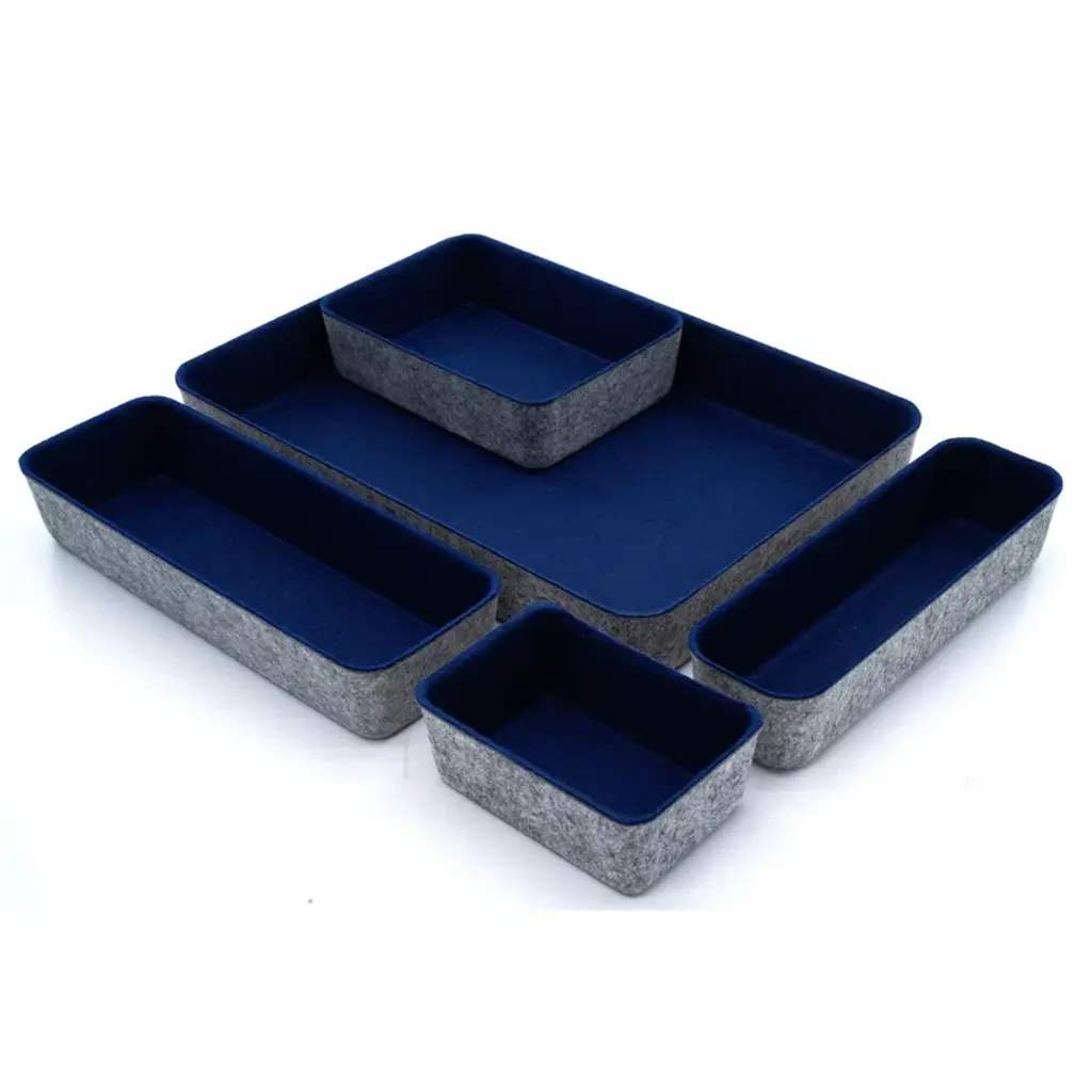 Trendy 2 tones color bins as cosy interior room decor, for small accessories, sticky notes, pens, cosmetics, makeup, and junk in the storage bin to fit in the drawer, pretty enough to keep on a desktop or inside a drawer. Organize each in a clean and modern lifestyle, with no noise like plastic, no slide when the drawer is pulled, and anti-slip of stuff inside of bins. Mix and match for any drawer size and storage need.