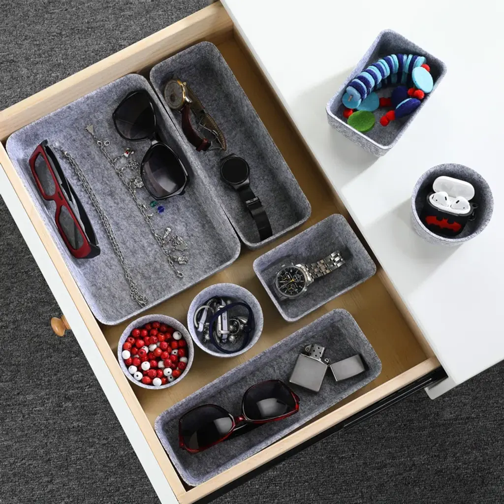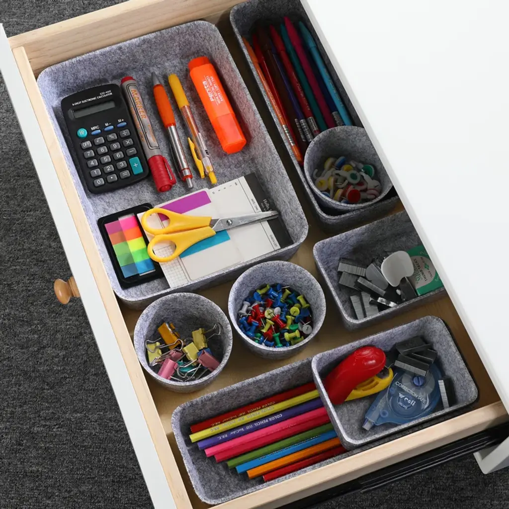 With small accessories, sticky notes, pens, cosmetics, makeup, and junk in the storage bin to fit in the drawer. organize each in a clean and modern lifestyle. Mix and match for any drawer size and storage need. Perfect for home, office, and desk use.