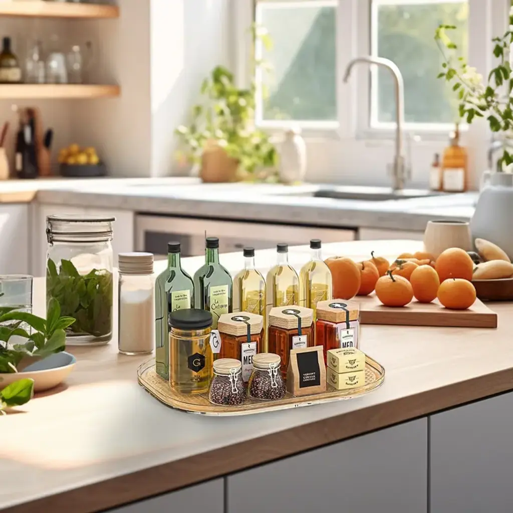 Minimum Space Required: Lazy Susan for refrigerator needs a space larger than 15.5'' L, 12'' W to rotate properly. Please measure the area you place the Lazy Susan organizer before purchasing to ensure rorate properly. NOTE: This Lazy Susan rotations may occupy additional storage space. Exclusive Original Design: This Heartspin Lazy Susan turntable for cabinet takes pride in our original design, protected by patent. Our Lazy Susan fridge organizer versatile use for kitchen, cabinet, pantry, bathroom, fridge organizers and storage. Rectangular Turntable: rectangular lazy susan outperforms traditional turntable organizer. This 360° rotating comdiment organizer makes everything on the tray really easy to grab and find. Gone are the days of old sauces, jars and containers getting stuck in the back of the fridge to turn into a forgotten fuzzy science experiment. Descartes Heart-shaped Curve: clear Lazy Susan draws its unique design inspiration from Descartes' heart-shaped trajectory, symbolizing love and anticipation. Infusing love into a product is for any life-loving lady. Game Changer: Our large lazy susan organizer has revolutionized users' perception of traditional refrigerator organizers and storage. With our products' help, you can transform your kitchen into a comfortable and organized haven.