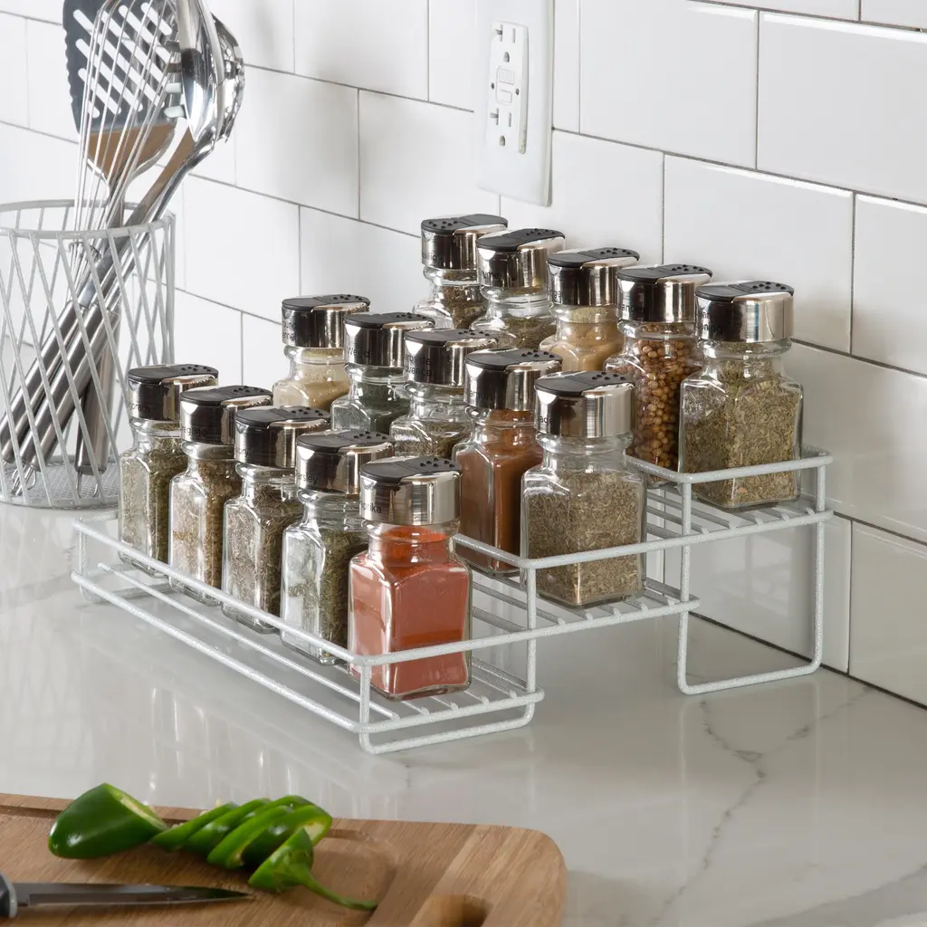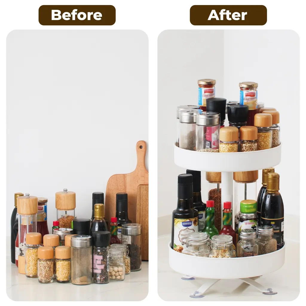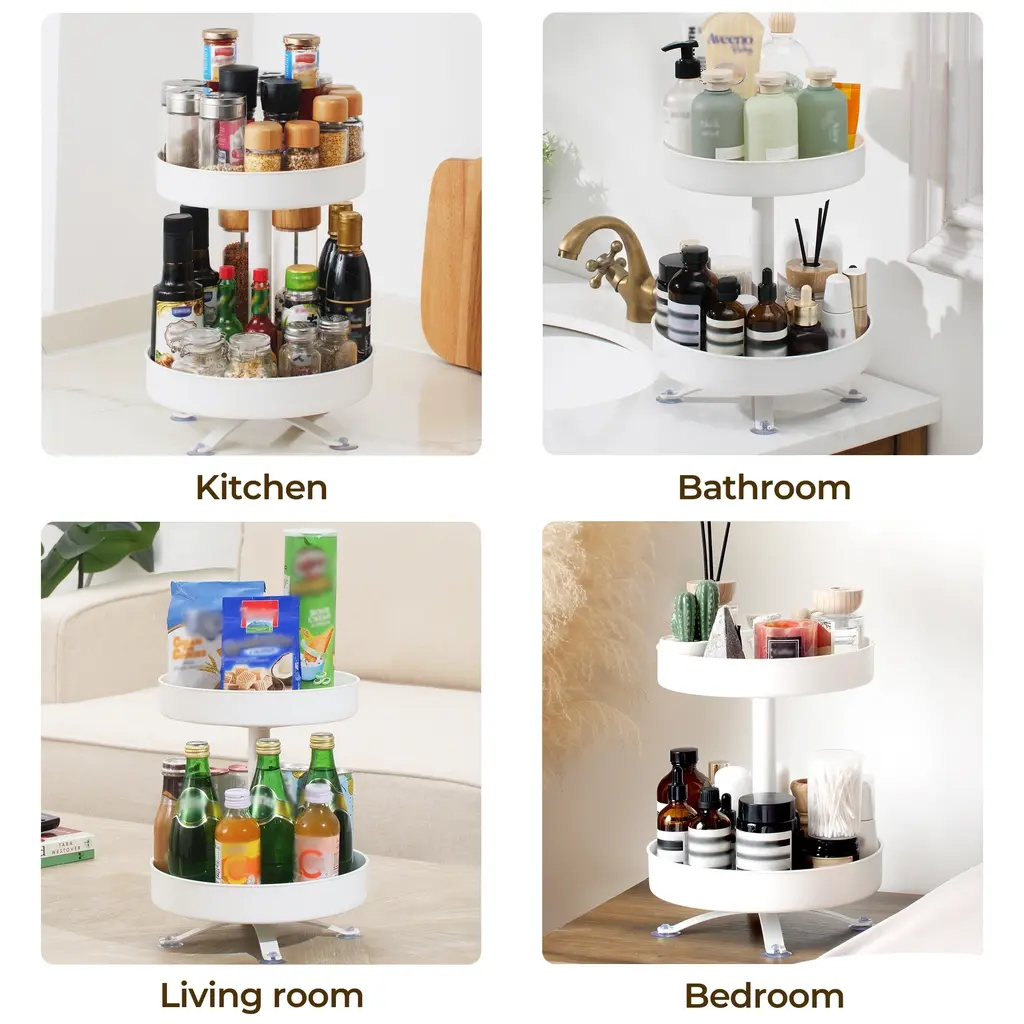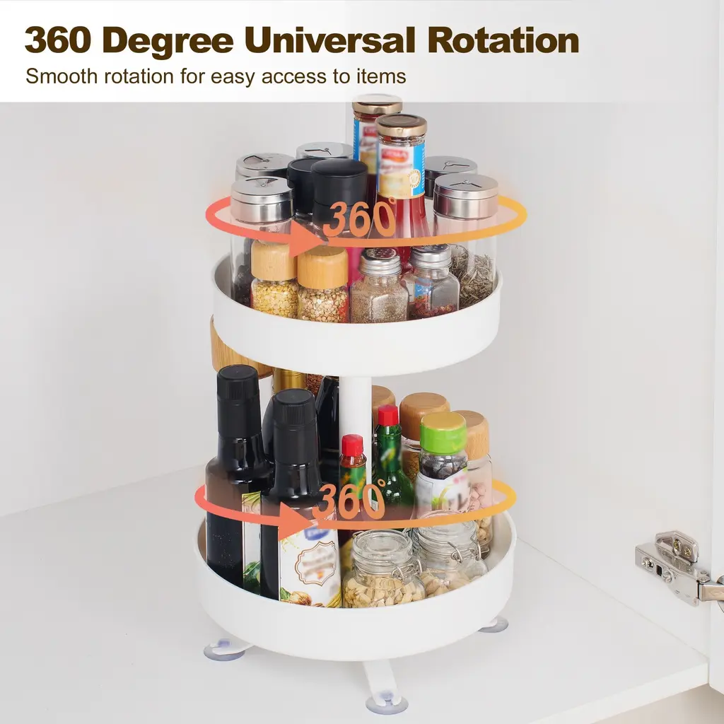 2 Tier Rotating Spice Rack, Kitchen Countertop Organizer - White