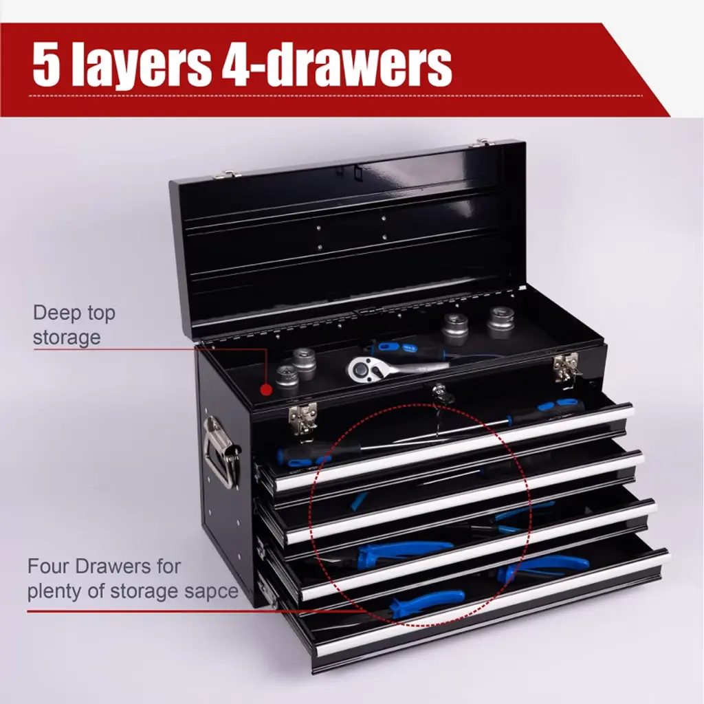 21-inch Metal Tool Box With 4 Lockable Drawers, Portable Tool Chest Organizer For Mechanics & Diy | Auto-locking System, Smooth Ball Bearing Slides