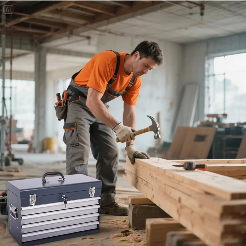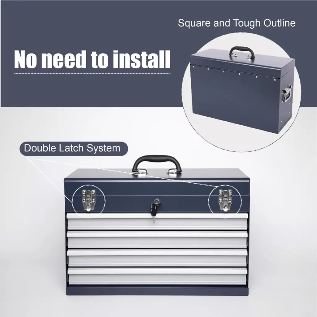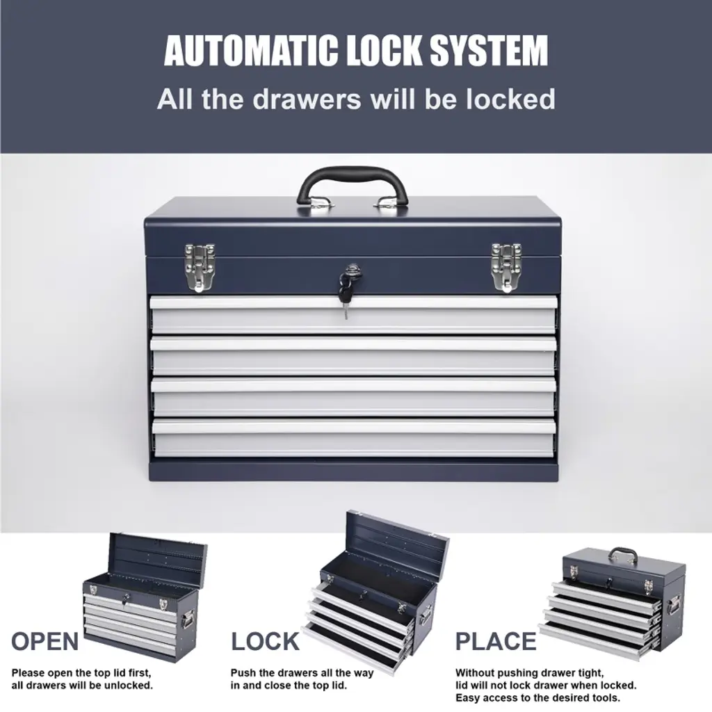 21-inch Metal Tool Box With 4 Lockable Drawers, Portable Tool Chest Organizer For Mechanics & Diy | Auto-locking System, Smooth Ball Bearing Slides