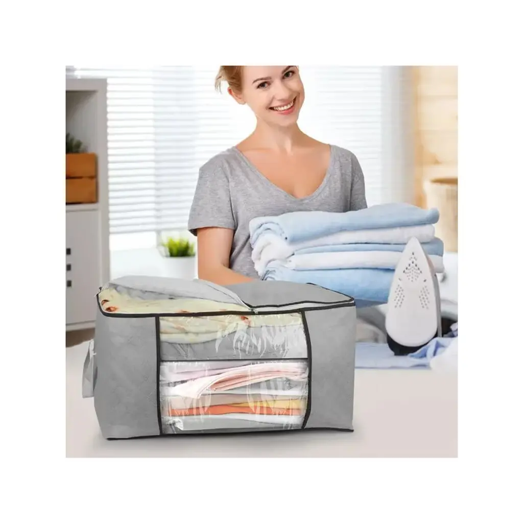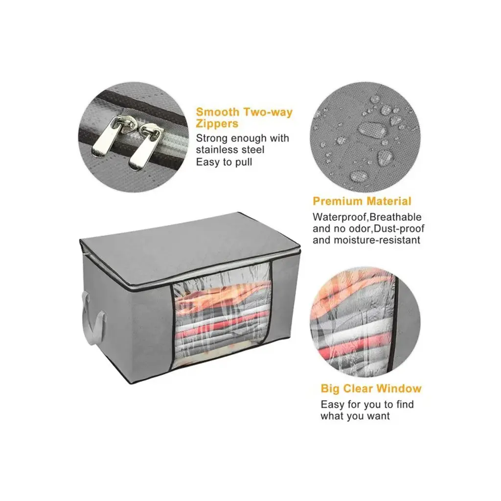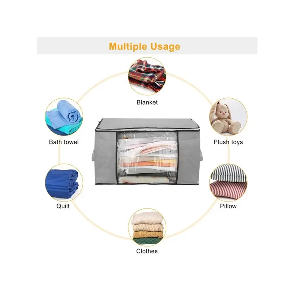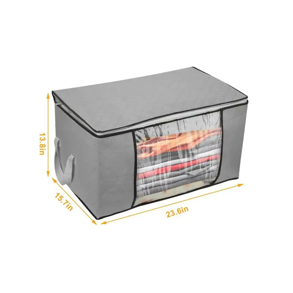 *Specifications*:Product Type: 2Pcs Clothes Storage BagMaterial: Composite Non-woven FabricColor Available: Grey, Blue,NavyBlueCapacity: 90L/23.78galItem Size: 60 x 40 x 35 cm / 23.6x15.7x13.8 inItem Weight: 360g/0.79lbsClear Window Size: 35 x 25cm/13.8 x 9.84in (Grey); 35 x 34cm/13.8 x 13.39in (Blue)*Package Lists*:2x Storage Bags