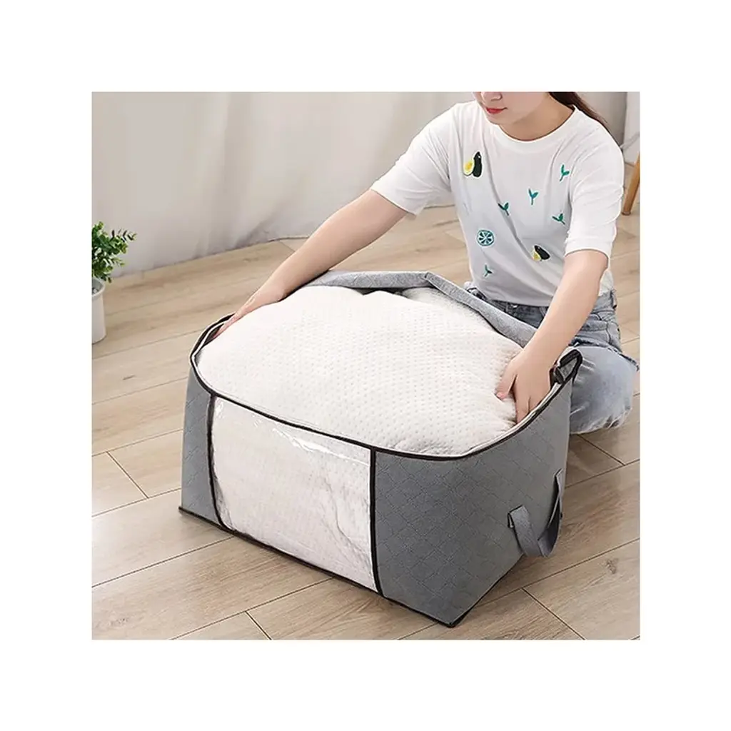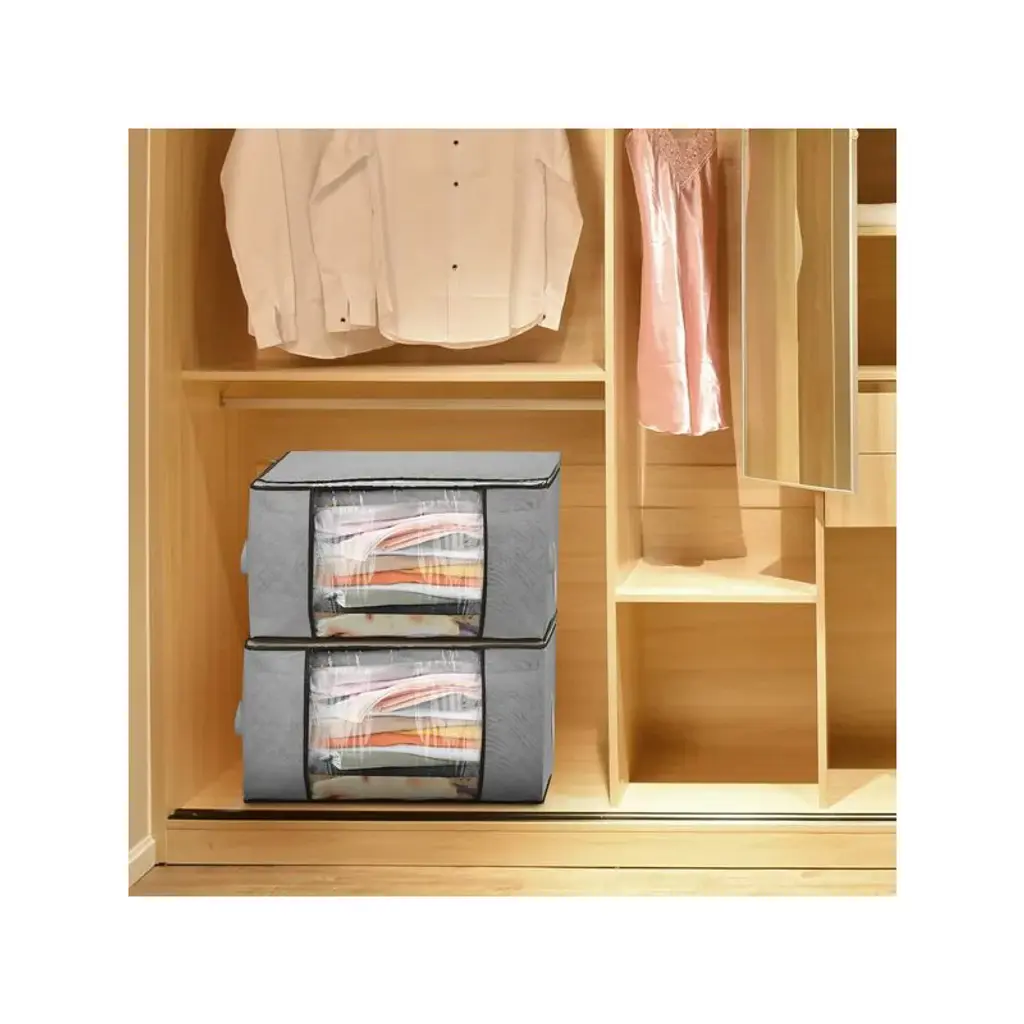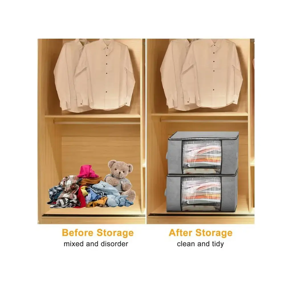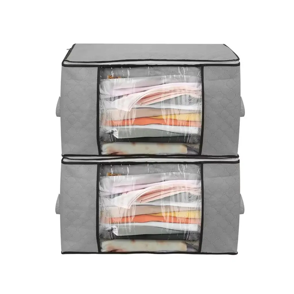 2Pcs Clothes Storage Bag 90l Large Capacity Foldable Closet Organizer W/ Thick Fabric Clear Window Dual-zipper