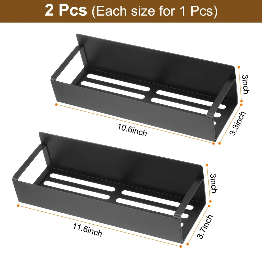Description:QUALITY MATERIAL - Our magnetic spice racks are made of sturdy iron materials, with a black matte finish, rust-proof, waterproof, stable, and durable. They keep spices conveniently within reach and keep your kitchen looking organized. Hollow-out bottom design, ventilation, moisture-proof; Smooth rounded corner design to prevent collision.MULTI-PURPOSE MAGNETIC SHELF - The spice rack organizer is designed with a solid magnetic to hold up to 8.8 lbs of storage weight. Just stick it on the side of the refrigerator door, microwave, oven (or other metal surfaces) won't move or fall off easily. You can adjust the distance between the shelves according to your needs.EASY TO INSTALL - The magnetic spice organizer does not require drilling or assembly. You can stick the magnet spice rack to the fridge or the side of other metal surfaces. They are easy to adhere to and adjust placement as needed, even if they hold a lot of bottles and don't move out of place. They make the most of space around the refrigerator and microwave to keep your countertops tidy and unclutteredEASY TO CLEAN AND SAVE SPACE - Our magnetic spice rack for refrigerators possess a smooth surface that is resistant to oil and dust, making it easy to clean. Rinse it with water or wipe it with a damp cloth for easy cleanup. WIDELY USED - The magnetic spice rack suits refrigerators, microwave ovens, coffee makers, washing machines, dryers, or other metal surfaces.Specification:Color: Black Small Magnetic Spice: 27x8.5x7.2cm/10.6x3.3x3 inches (L*W*H)Large Magnetic Spice: 29.5x9.5x7.2cm/11.6x3.7x3inches (L*W*H)Package Content: 2pcs including 1pcs Small Magnetic Spice and 1pcs Large Magnetic Spice