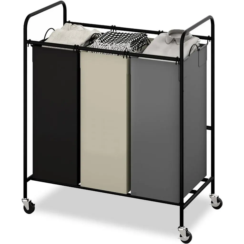 3-bag Laundry Sorter Cart, 120l Rolling Laundry Hamper With Lockable Wheels, Large Laundry Basket Organizer Storage Laundry Cart For Clothes, Toys