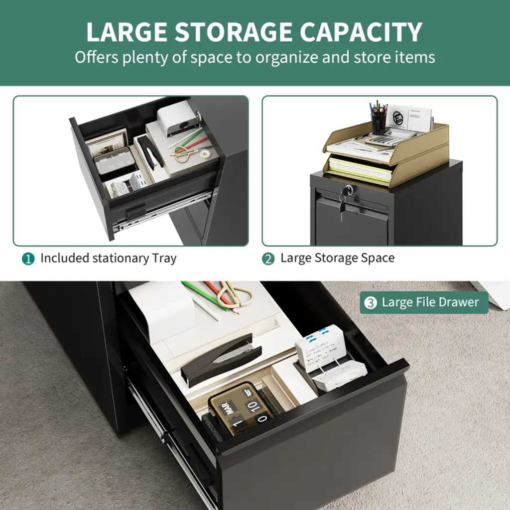 3 Drawer Vertical File Cabinet With Lock - Metal Filing Cabinet For Letter/legal/a4/f4 Size Documents, Heavy Duty Steel Office Storage Organizer