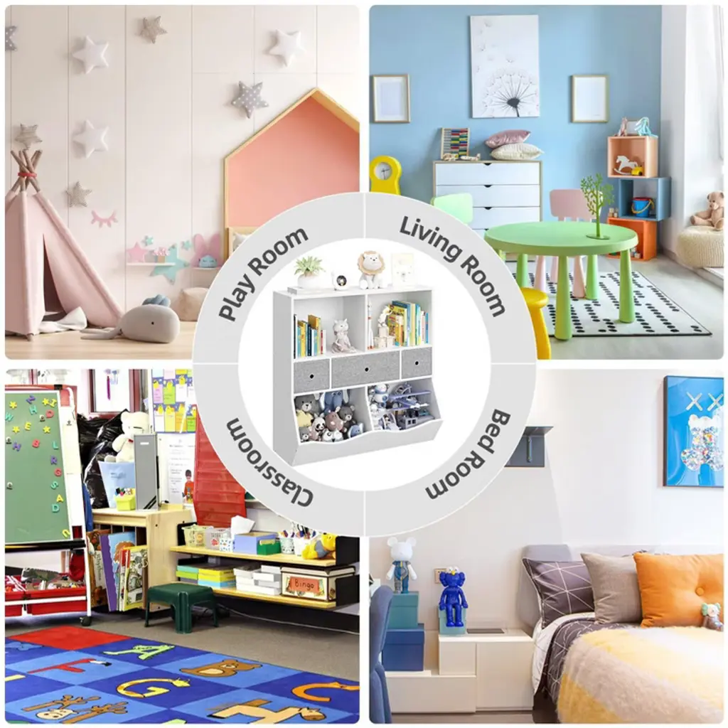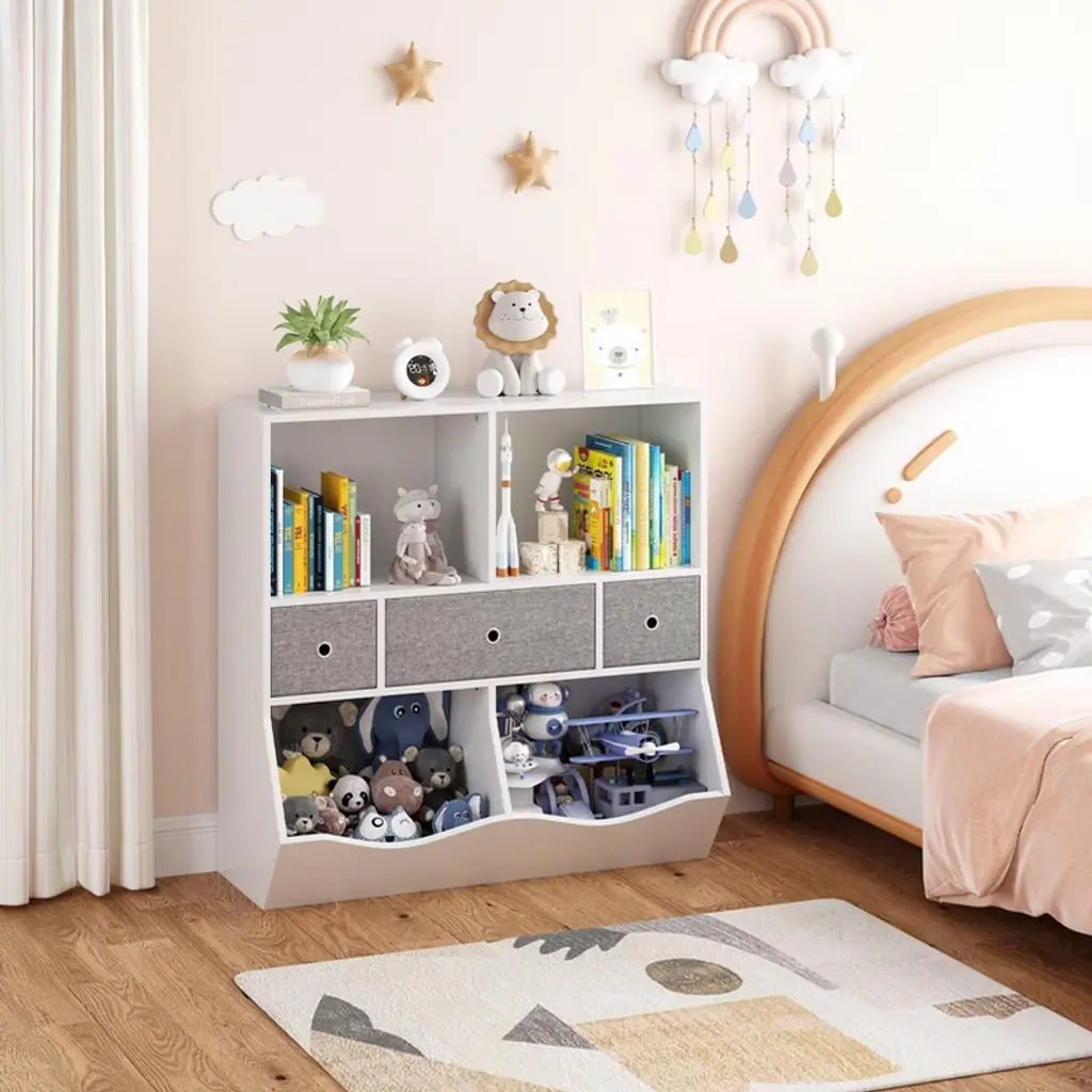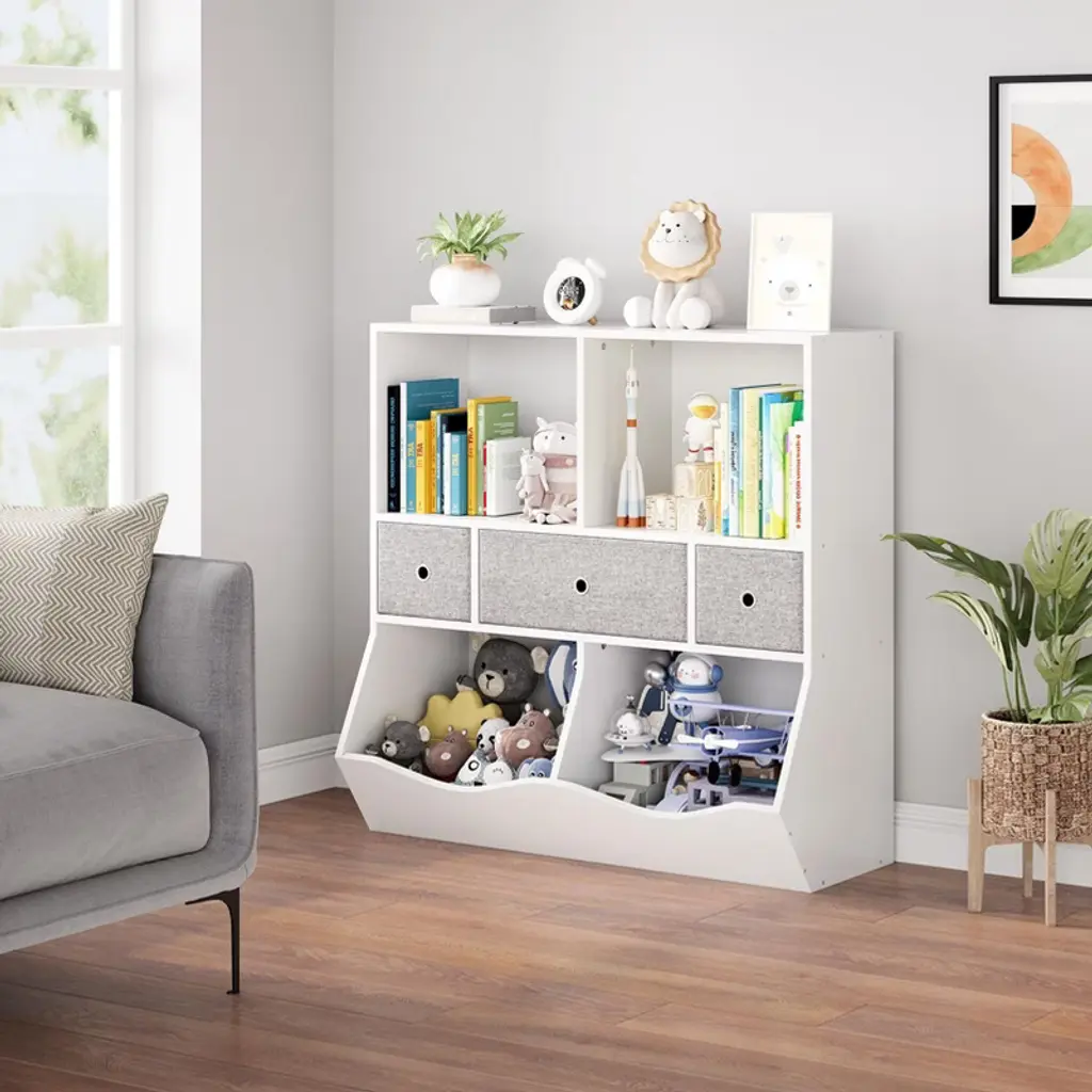 Toy Storage Organizer for Kids Transform your child's space with our versatile Toy Storage Organizer, featuring ample storage, safety-first design, and easy assembly for a tidy and cheerful playroom! Highlights at a Glance: - Spacious Kids Toy Storage Box for Easy Organization - Stylish Book Shelf for Kids Rooms - Functional Toy Storage Shelves for All Items - Practical Kids Bookcase for Tidy Spaces - Compact Toddler Bookshelf for Small Areas - Durable Kids Toy Cabinet Organizer for Playrooms - Efficient Toy Organizers and Storage Bins Specification: Shape: Rectangular Mounting Type: Freestanding Material: Engineered Wood Size: 36.6 inches Wide x 11.4 inches Deep x 36.6 inches High Packing List: 1 x Toy Storage Organizer (with instructions) Friendly Note: 1. Safety Features: Always secure the toy storage organizer to the wall using the provided anti-tip kit to prevent accidents, especially in homes with young children. 2. Cleaning: Wipe down surfaces with a soft, damp cloth to keep them clean. Avoid using harsh chemicals or abrasive materials to prevent damage to the finish. 3. Drawer Operation: Open and close the drawers gently to prevent damage.