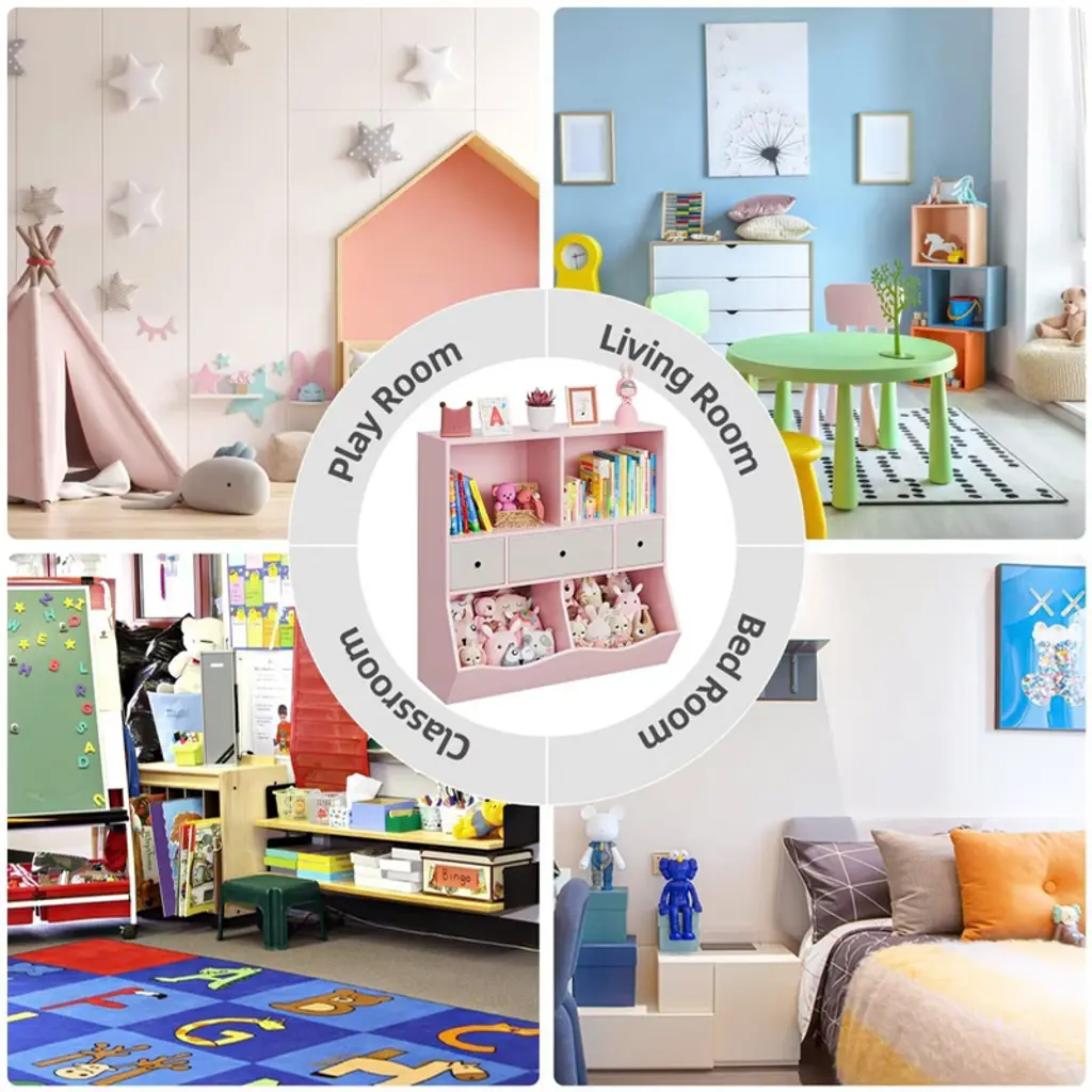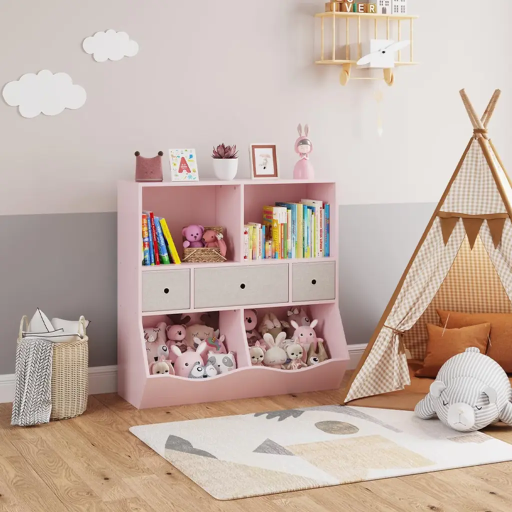 3-tier Kids Bookshelf, Toy Storage Organizer With 3 Drawers,wooden Bookcase With Large Toy Storage Cabinet For Playroom
