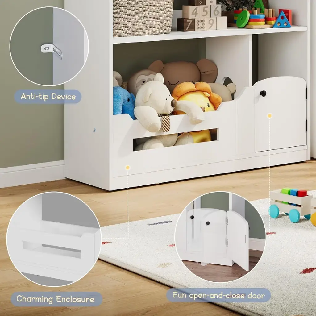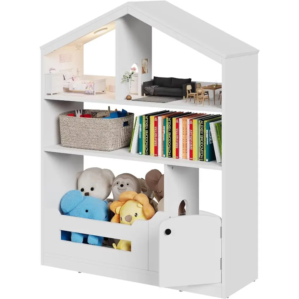 No matter where you put it—your kid's bedroom, playroom, or study—this two-tiered bookshelf looks great. Its simple and classic house design works well with all kinds of kids' decor styles, whether you like modern, cozy, or something in between. It's an easy way to spruce up any space while being functional for kids.Don’t let its cute look fool you—this two-tiered bookshelf has plenty of space to hold all your child’s things. The upper tier is perfect for displaying special toys or storybooks, while the lower one is great for everyday items like coloring books and small toys. It’s ideal for small kids’ rooms, helping them keep everything tidy without taking up too much floor space.