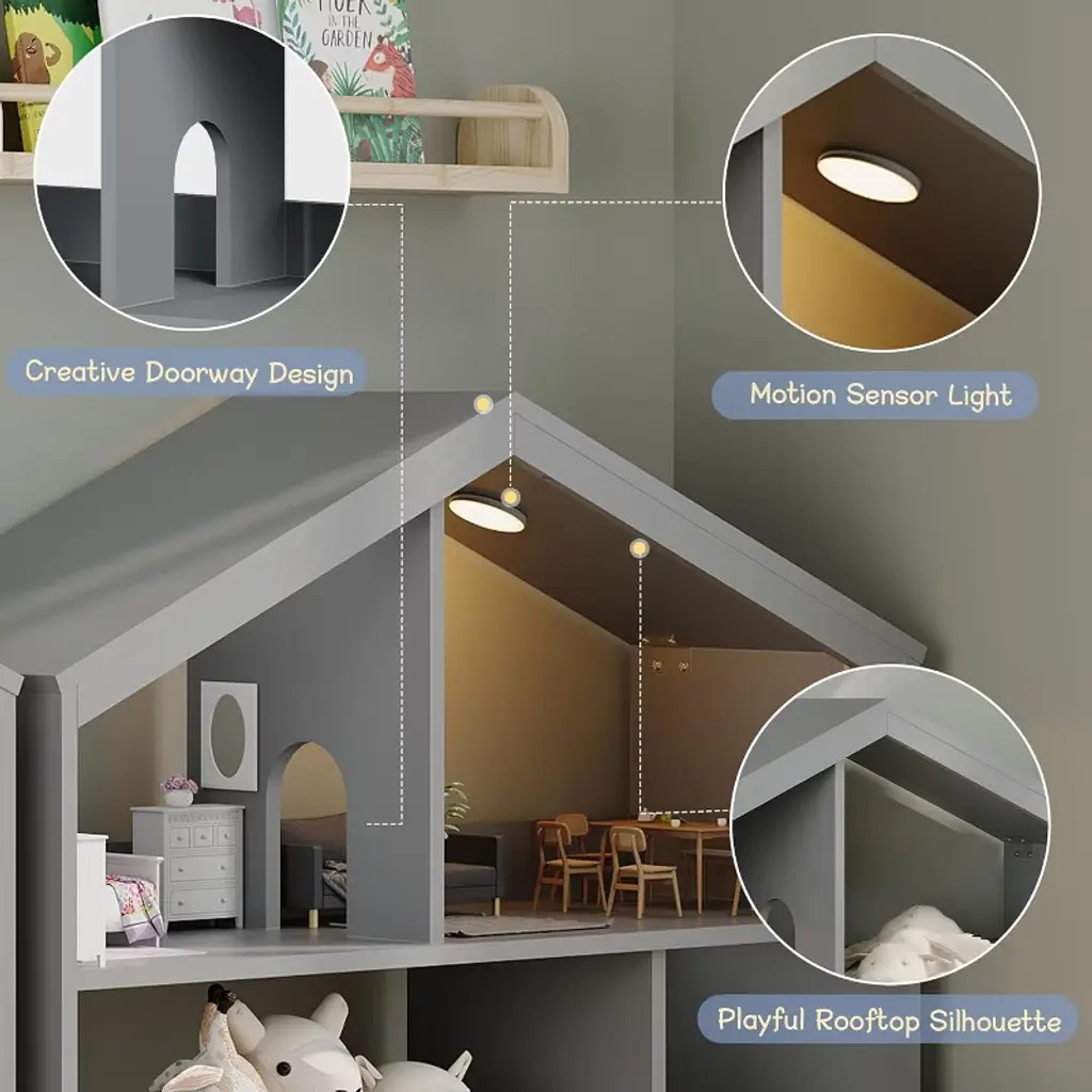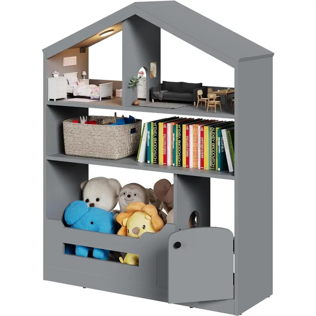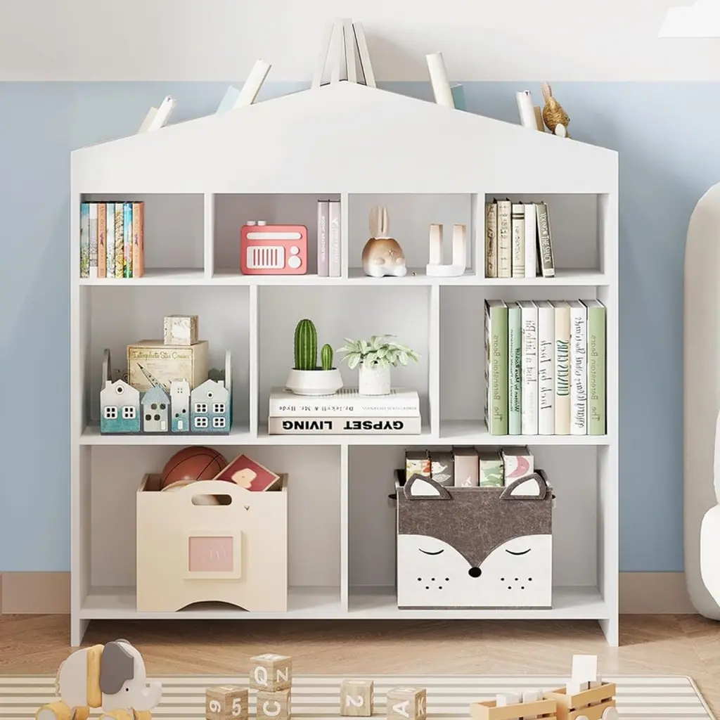 No matter where you put it—your kid's bedroom, playroom, or study—this two-tiered bookshelf looks great. Its simple and classic house design works well with all kinds of kids' decor styles, whether you like modern, cozy, or something in between. It's an easy way to spruce up any space while being functional for kids.Don’t let its cute look fool you—this two-tiered bookshelf has plenty of space to hold all your child’s things. The upper tier is perfect for displaying special toys or storybooks, while the lower one is great for everyday items like coloring books and small toys. It’s ideal for small kids’ rooms, helping them keep everything tidy without taking up too much floor space.