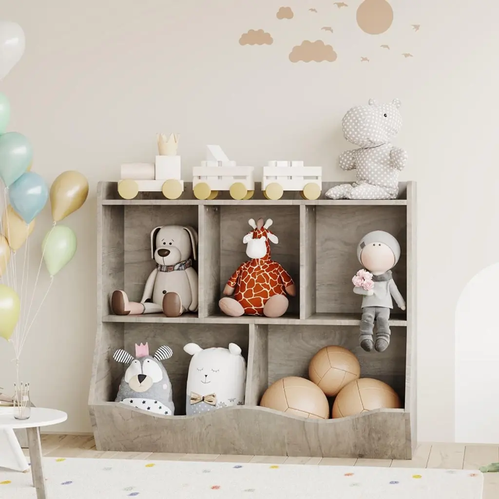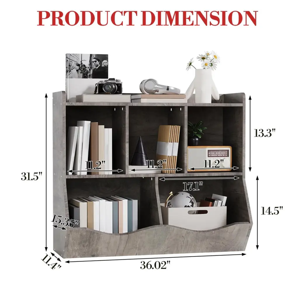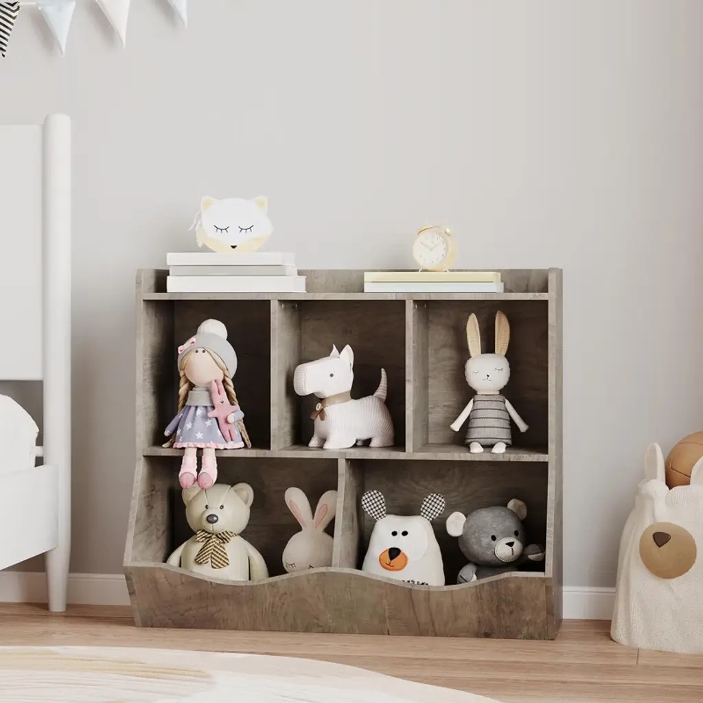 3-tier Mdf Toy Storage Organizer - 5-section Kids Bookshelf | Daycare & Nursery Furniture | Grey