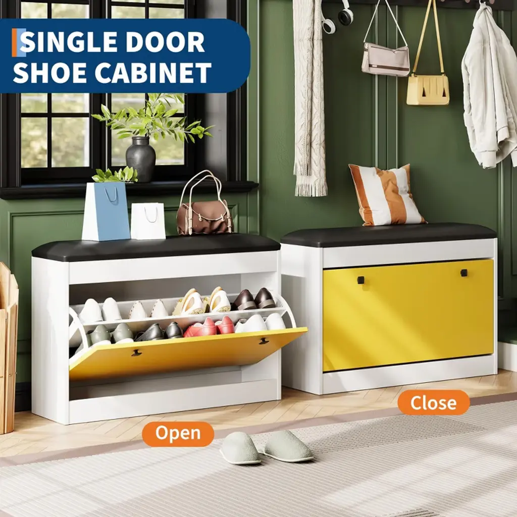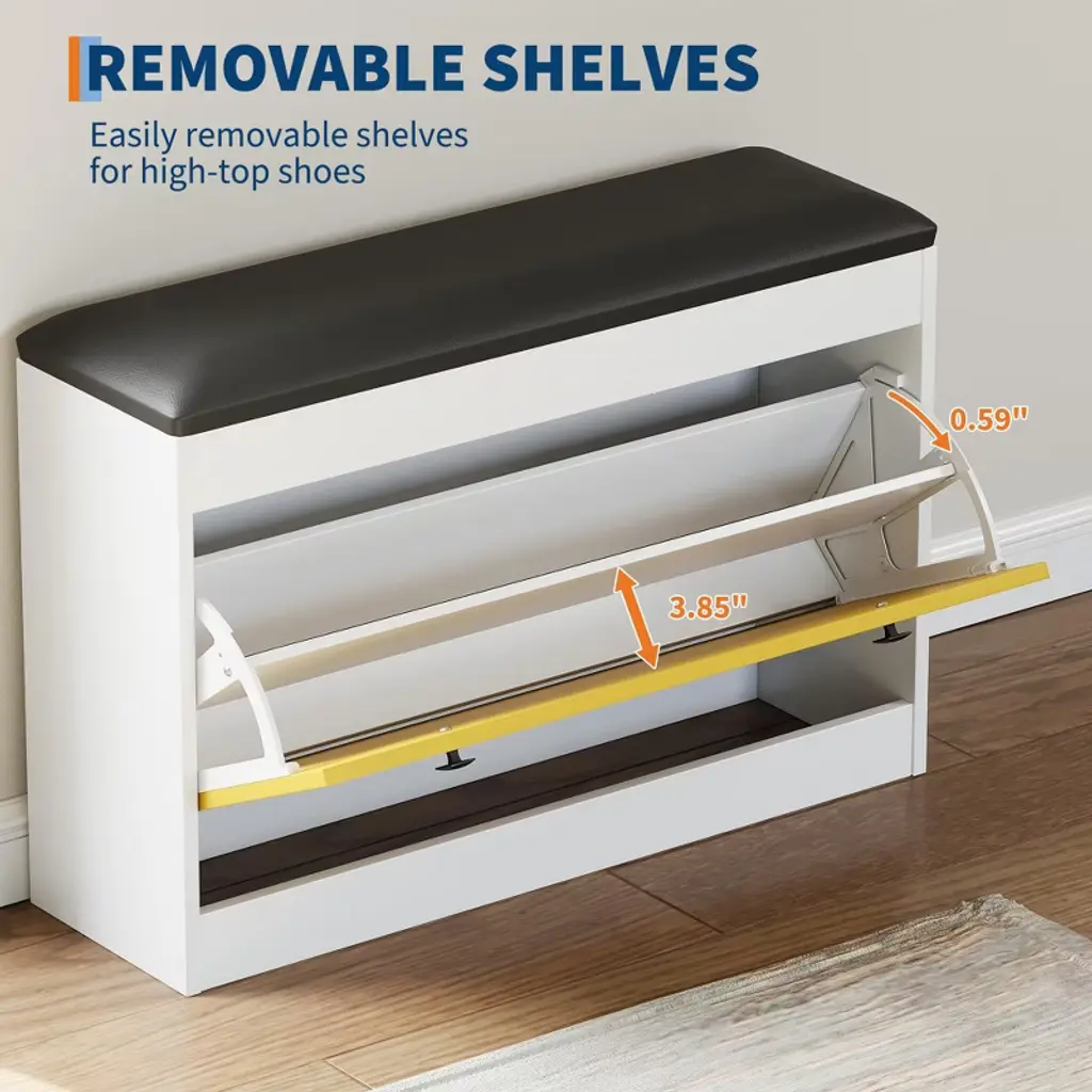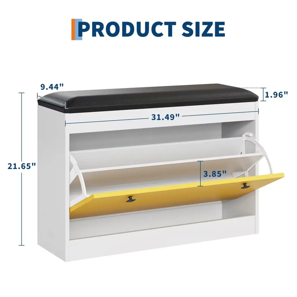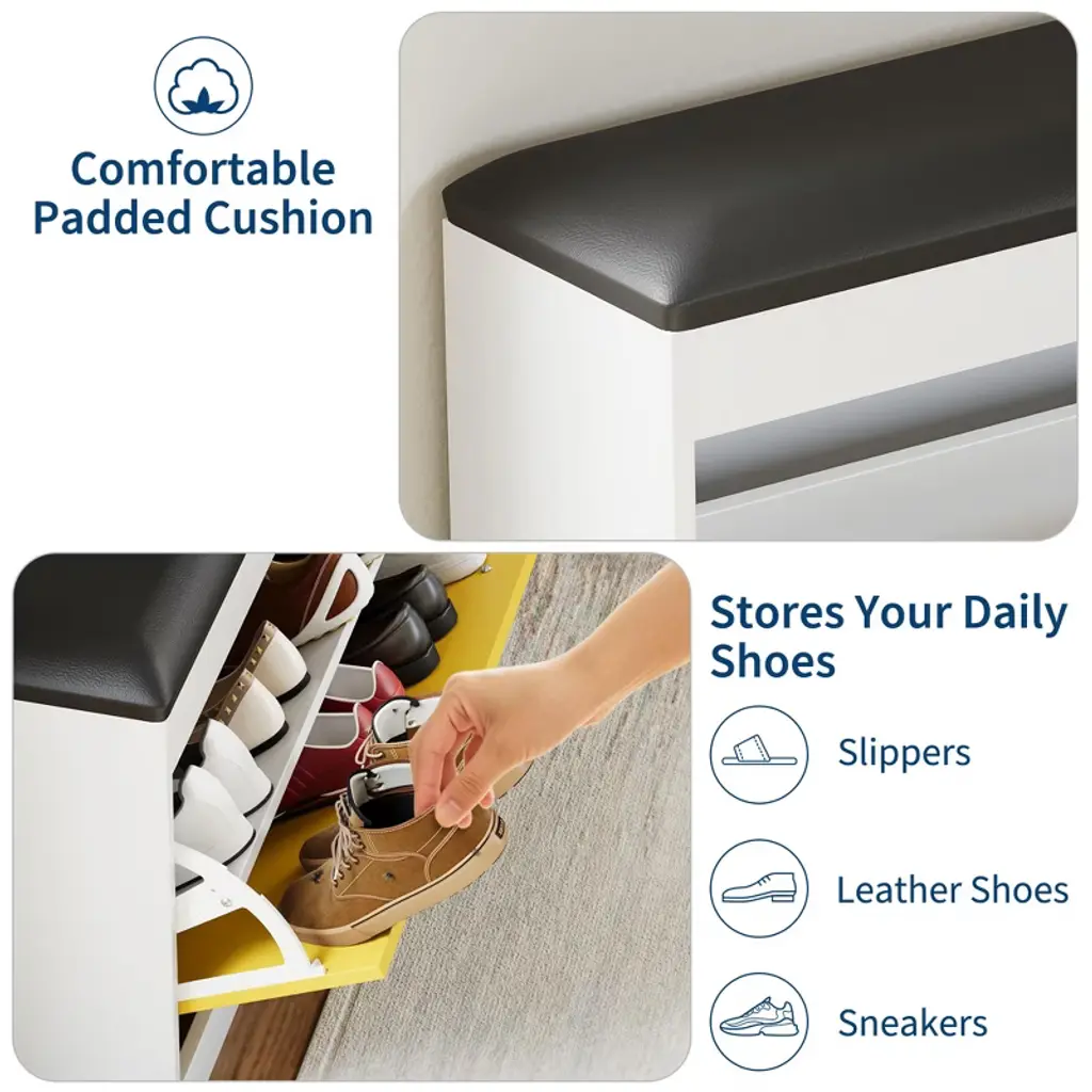 This sleek and space-saving shoe storage bench is designed for compact areas such as apartments, dorms, hallways, or mudrooms. Combining a modern white finish with functional storage and a comfortable seating cushion, it keeps your entryway organized without sacrificing style or space.