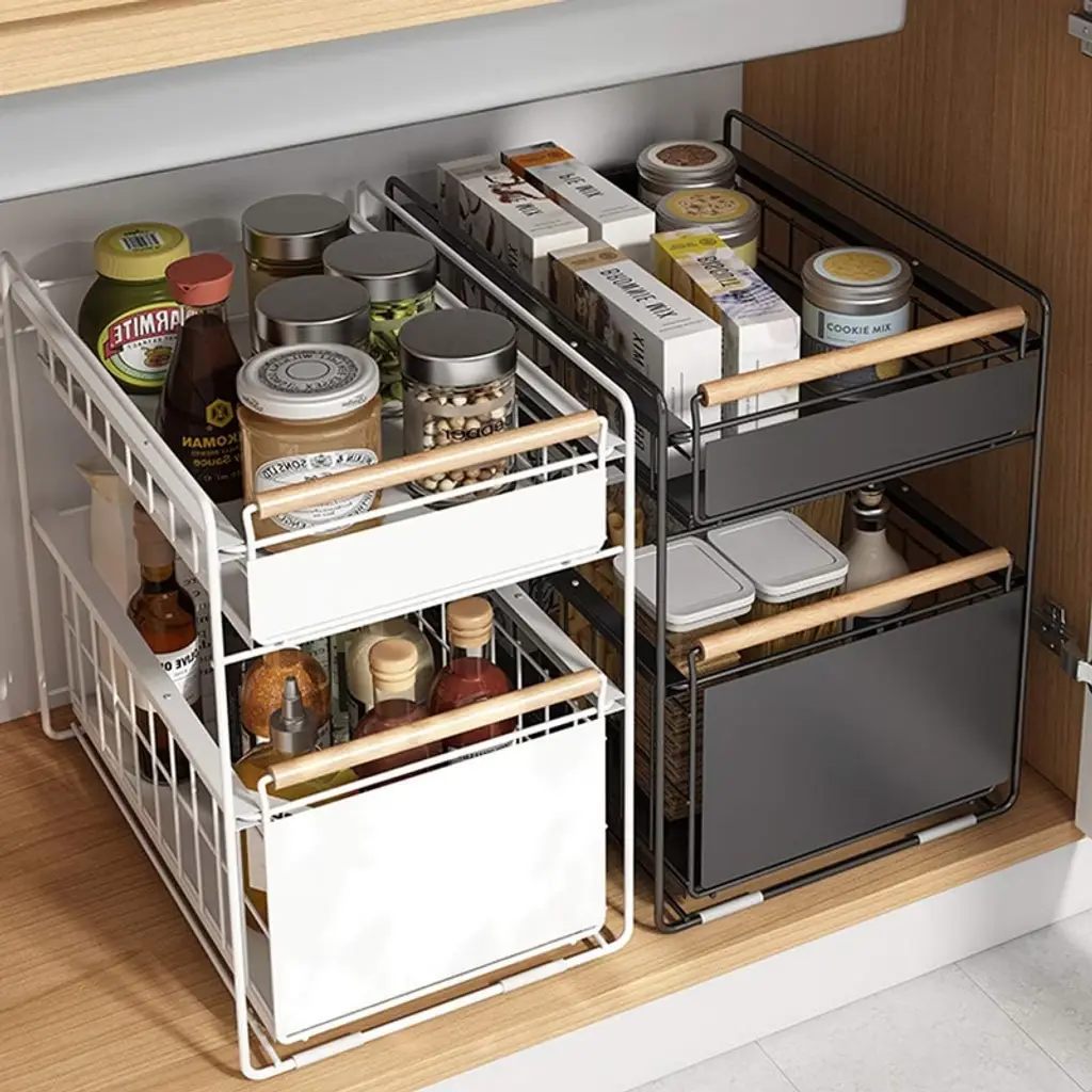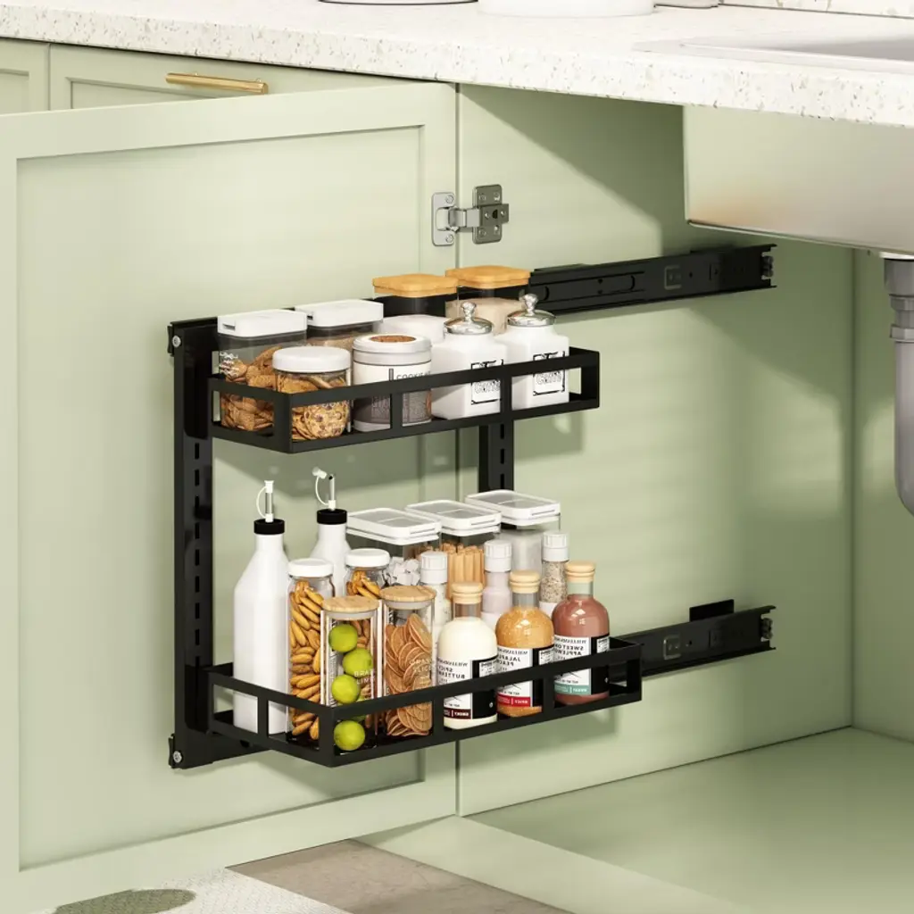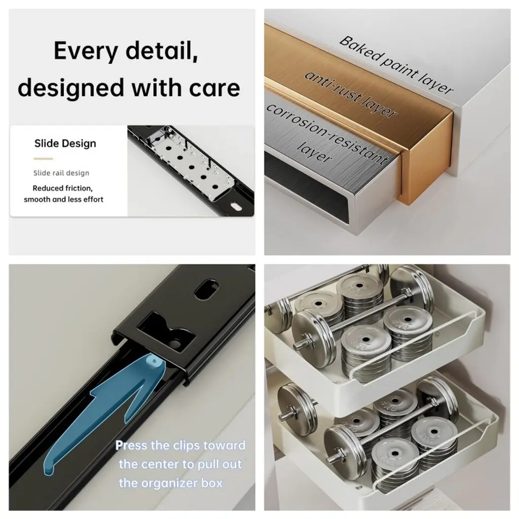✅【Strong and Sturdy】: The pull-out cabinet storage rack is made of sturdy carbon steel and has amazing load-bearing capacity. The surface of the expandable sl-ide out kitchen drawr is treated with baking paint, ensuring easy maintenance and durability even in humid environments. ✅【Smooth and Quiet Sliding】: Our cabinet basket organiser storage box employs a dampened design. After 4W tests, the dampened ensures smooth and noise-free sliding. self adhesive sl-ide out drawers kitchen, keeping them tidy and no need to kneel and take anything from the lower shelf. ✅【Smooth and Convenient】: Pull-out kitchen storage box set, carbon steel sliding cabinet drawer storage rack, kitchen storage basket for dishes. The roll out storage shelf, cupboard pull out storage pantry shelf can be completely pulled out without falling off the sliding bracket. ✅【No Drilling or Screwing】: This pull out kitchen storage drawer is easy to install without the need for drilling or screwing! The new nylon adhesive design ensures easy installation while providing excellent stability, perfect for kitchen, bathroom, and pantry organization. Enjoy the convenience of easy disassembly without any effort. ✅【Various Occasion】: You can use this sl-ide out drawers for kitchen cabinets cupboards to manage baking trays, cutting boards, cake trays, and more. Roll out shelves, pull out tray rack bracket is an ideal pull-out storage rack for cabinets(kitchen organiser shelf), storage rooms, bathrooms, living rooms, and other places.