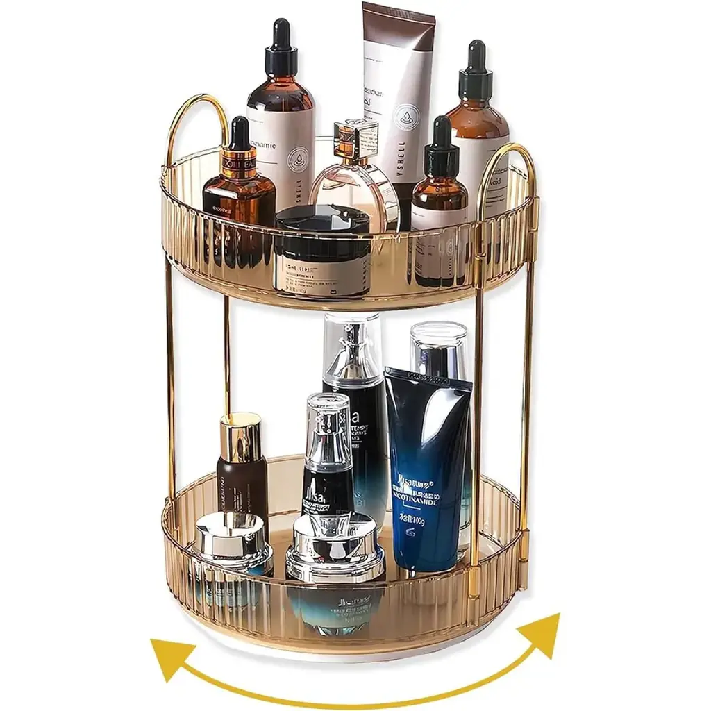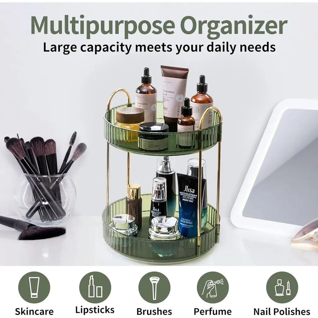 360 Rotating Makeup Organizer For Vanity,2 Tier Large Capacity Cosmetics Skincare Organizers - 9"d X 9"w X 18"h - Green