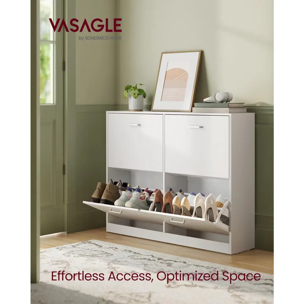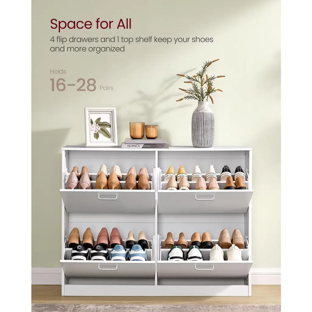 4-door Flip Shoe Storage Cabinet With Adjustable Shelves, Holds 16-28 Pairs, Space-saving Organizer, 9.4x41.5x32.6 Inches£¬snow White