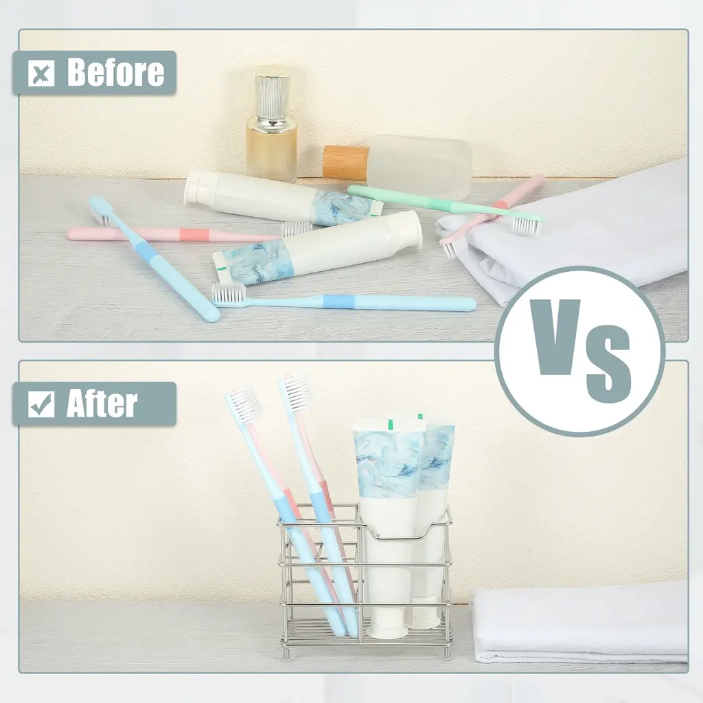 Feature:The Toothbrush Holders are made of 304 stainless steel, the color is shiny and shiny, it is waterproof, strong and light, not easy to damage, and durable.Lightweight and compact, it does not take up a lot of space, but there is enough storage space for toothbrushes, toothpaste, razors, facial cleansers, combs, eyebrow trimmers, etc., to meet the various storage needs of family members.The hollow frame facilitates drain and ventilation, avoiding water accumulation at the bottom of the toothbrush holder. Minimalist design, more convenient and easy to use.Multi-scene use, You can place it anywhere in the bathroom or small apartment without worrying about you toothbrush or toothpaste falling off. Not only can it be used for storage in the bathroom, but it can also be used in the kitchen to make small items more tidy.Specification:Color: Silver ToneMaterial: 304 Stainless SteelSize: 12.1x6x10.1cm / 4.76"x2.36"x3.98"(L*W*H)Package Included:1 pc 304 Stainless Steel Toothbrush Holder