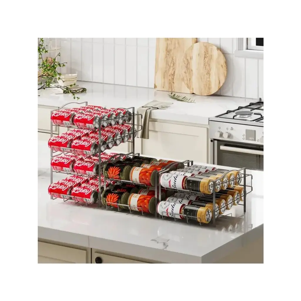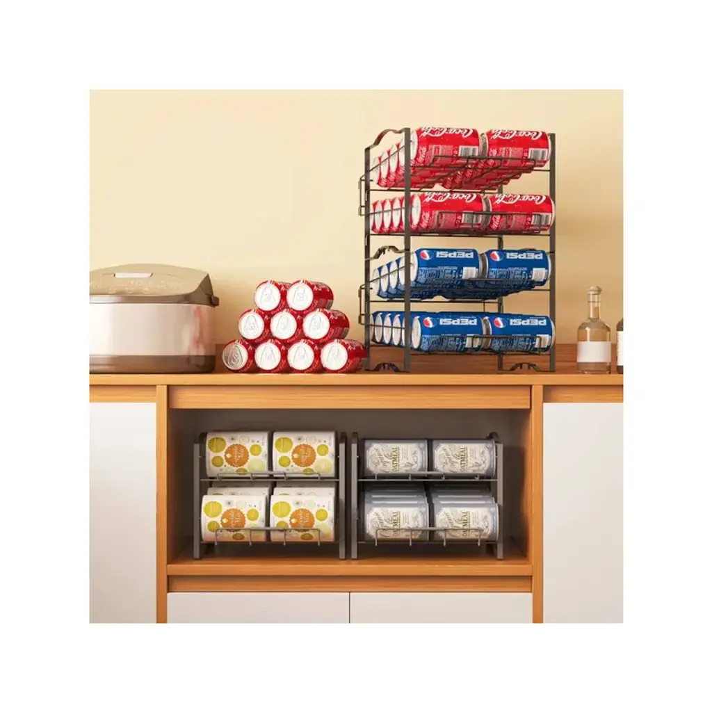 4 Tiers Can Organizer Rack, 48 Cans Soda Can Dispenser Organizer For Refrigerator, Set Of 2 Stackable Beverage Dispenser Rack